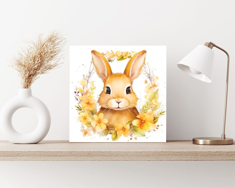 12" X 12" White Yellow And Pink Rabbit Easter Floral Canvas Square Hanging Wall Decor