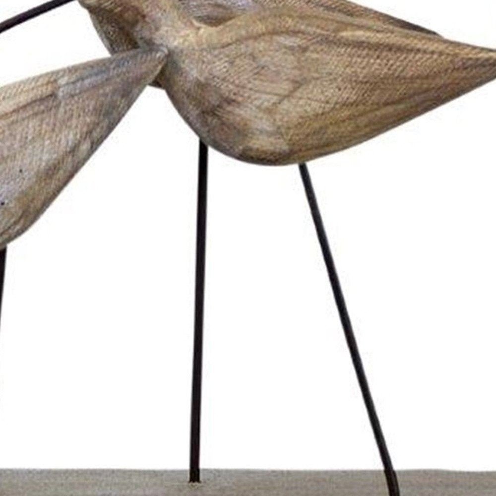 13" Natural Metal And Wood Coastal Sand Plover Birds Tabletop Sculpture
