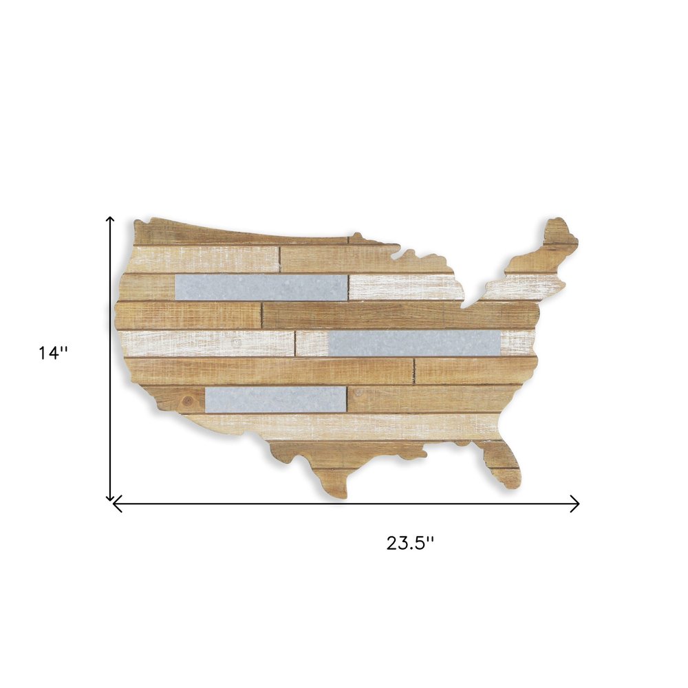 14" X 24" Brown and Gray Wood and Metal Hanging Dimensional Sculpture