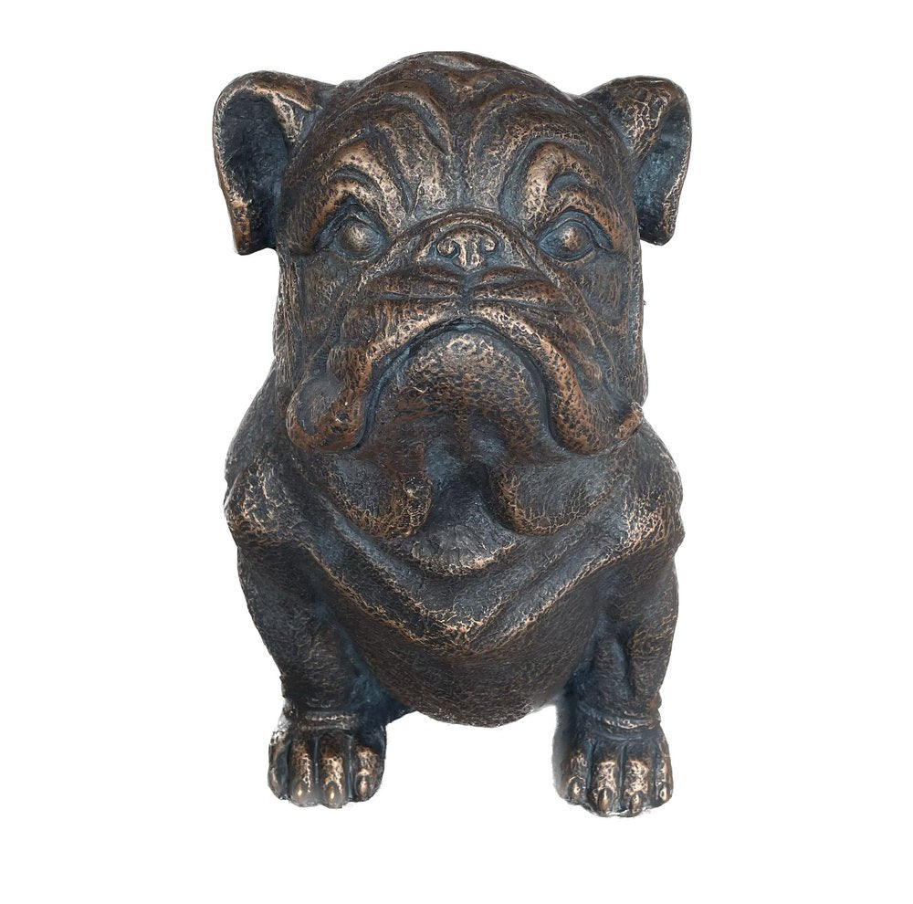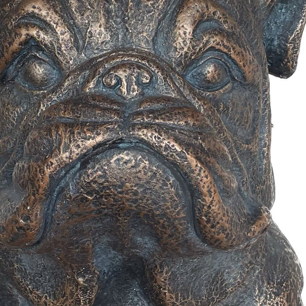 The 16-inch antiqued bronze bulldog outdoor statue adds a charming touch to any garden or patio. This delightful piece features an animal theme, celebrating the beloved dog in all its glory. Crafted from durable polyresin, this statue is designed to withstand the elements while maintaining its pristine appearance. The antiqued bronze color enhances the vintage look, making it a perfect complement to your outdoor decor. Whether placed among flowers or as a standalone accent, this bulldog statue exudes personality and warmth. It effortlessly brings a playful spirit to your outdoor space, inviting joy and charm into every corner of your garden setting. Make a statement with this elegant yet whimsical addition to your home garden decor. 16.00-inch h x 16.00-inch w x 10.00-inch d.
