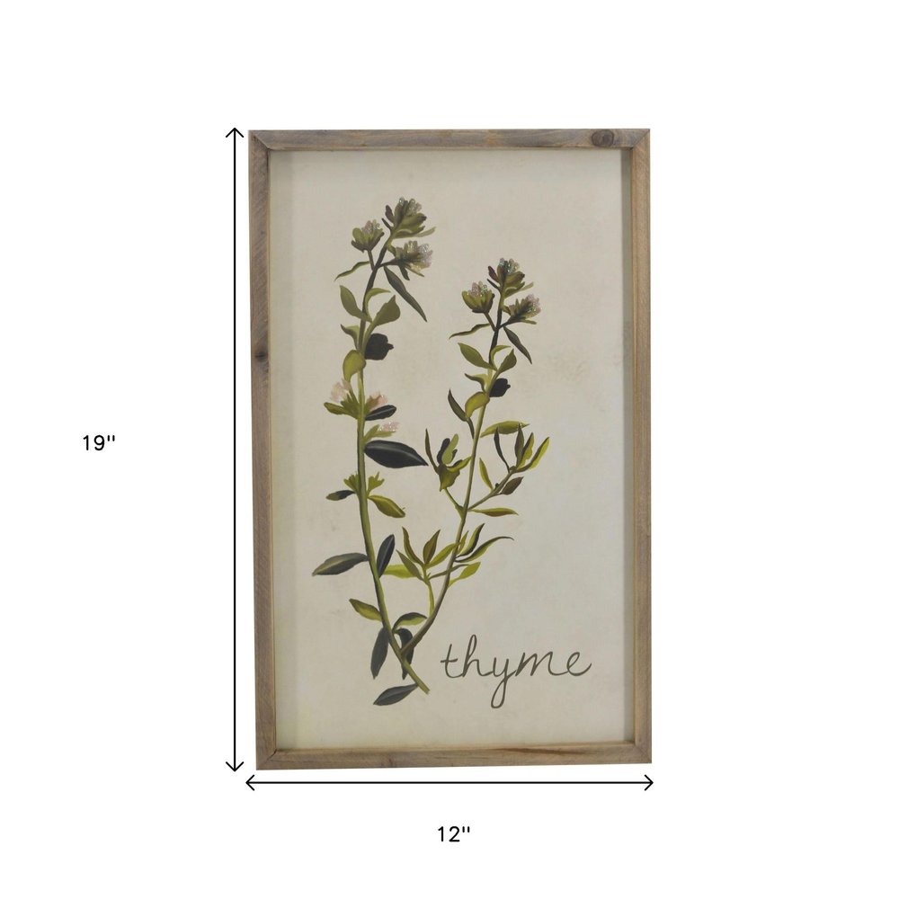 19" X 12" Green And White Thyme Floral Wood Wall Decor