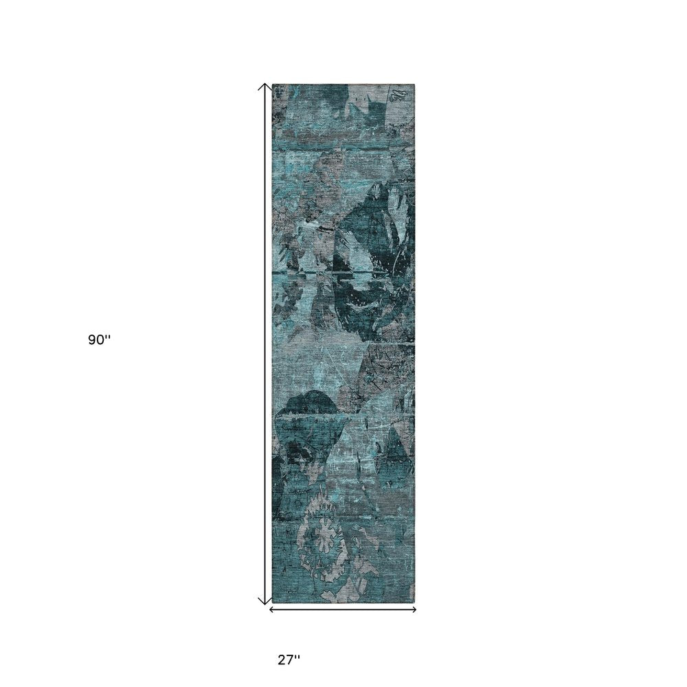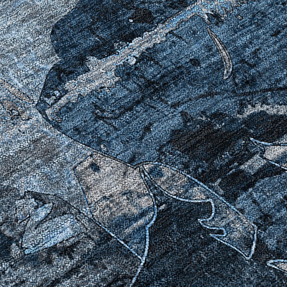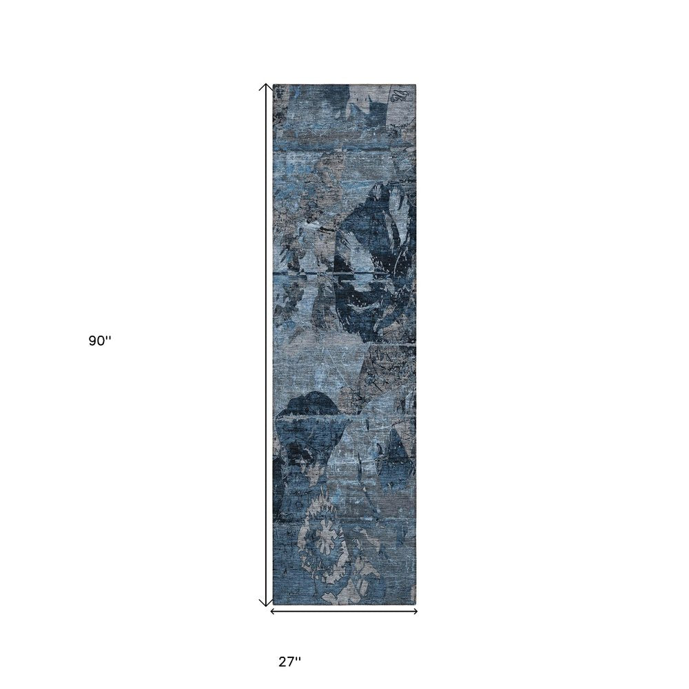 More from 2' X 8' Blue and Dark Blue Abstract Washable Indoor Outdoor Runner Rug Collection