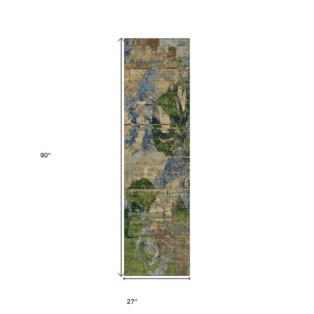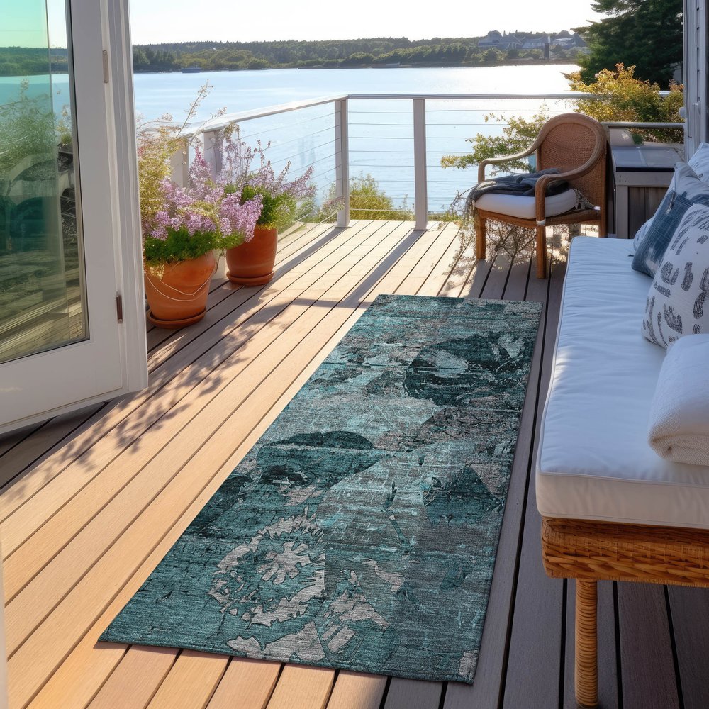 Add great coloration and comfortable texture to your space with this 2-foot x 8-foot blue and dark blue abstract washable indoor outdoor runner rug. This runner shaped rug features a abstract design in blue and dark blue to give it visual interest. A classic shape marries with good looking design for your space ideal for spaces with kids and pets, this rug is stain resistant to help repel stains and spilled liquids. Place this area rug against a hardwood or tile floor and it will enliven your living space with style and sophistication. 27-inch H x 90-inch W x 0.19-inch D