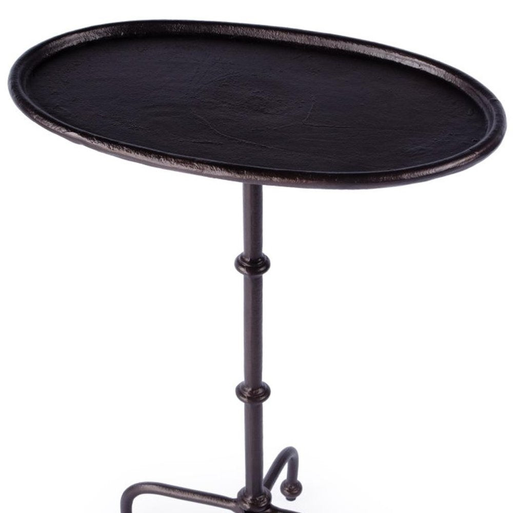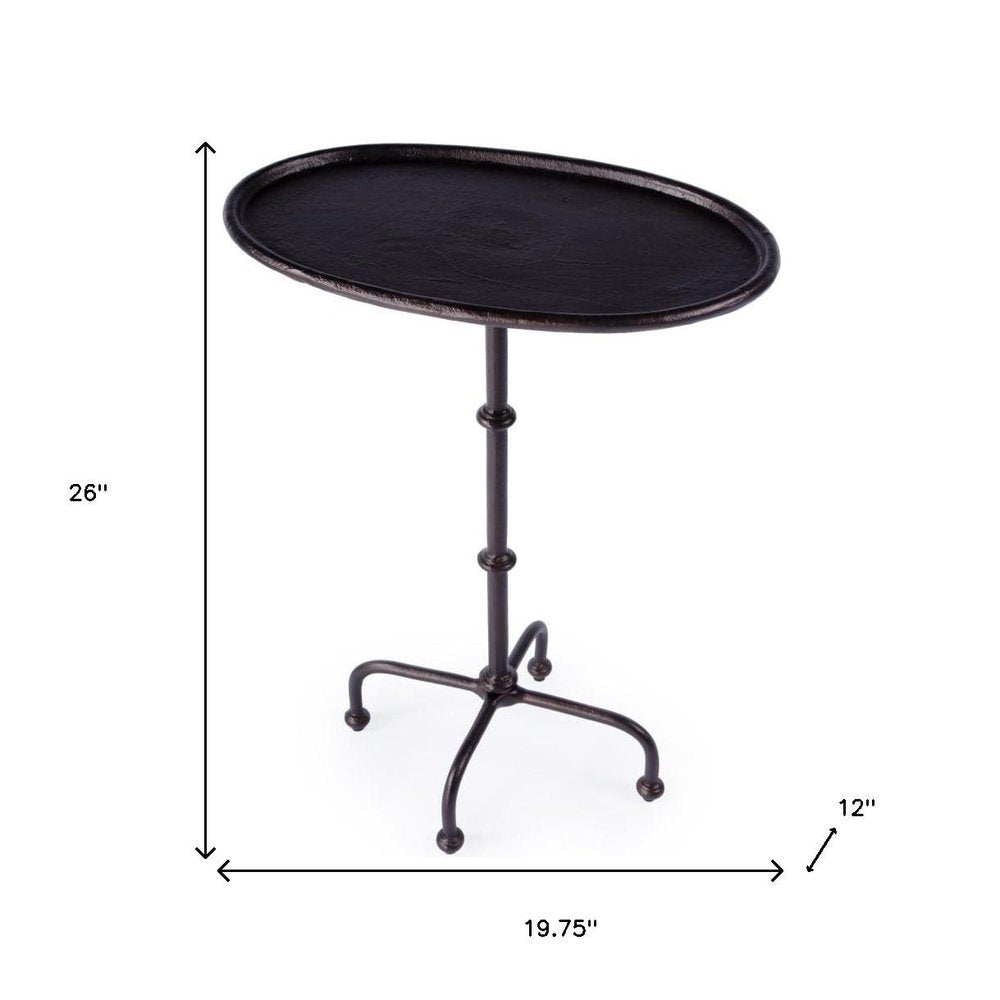 Enjoy the great outdoors in style with our 20-inch black oval aluminum outdoor side table. This side table is a natural complement to any outdoor decor, adding both function and style to your outdoor space. The soft oval shape of this outdoor table promotes a soft, elegant, and intimate environment. Don't miss out on this must-have outdoor accessory. 26.00-inch h x 19.75-inch w x 12.00-inch d.