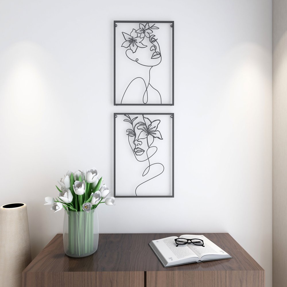 More from 20" X 14" Black Metal Abstract Female Face Hanging Dimensional Sculpture Collection