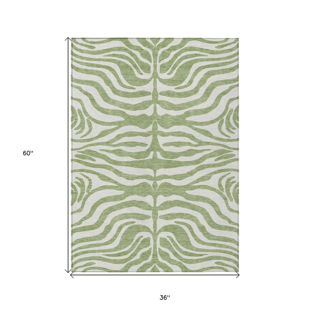 More from 3' X 5' Artichoke Green And Ivory Animal Print Washable Indoor Outdoor Area Rug Collection