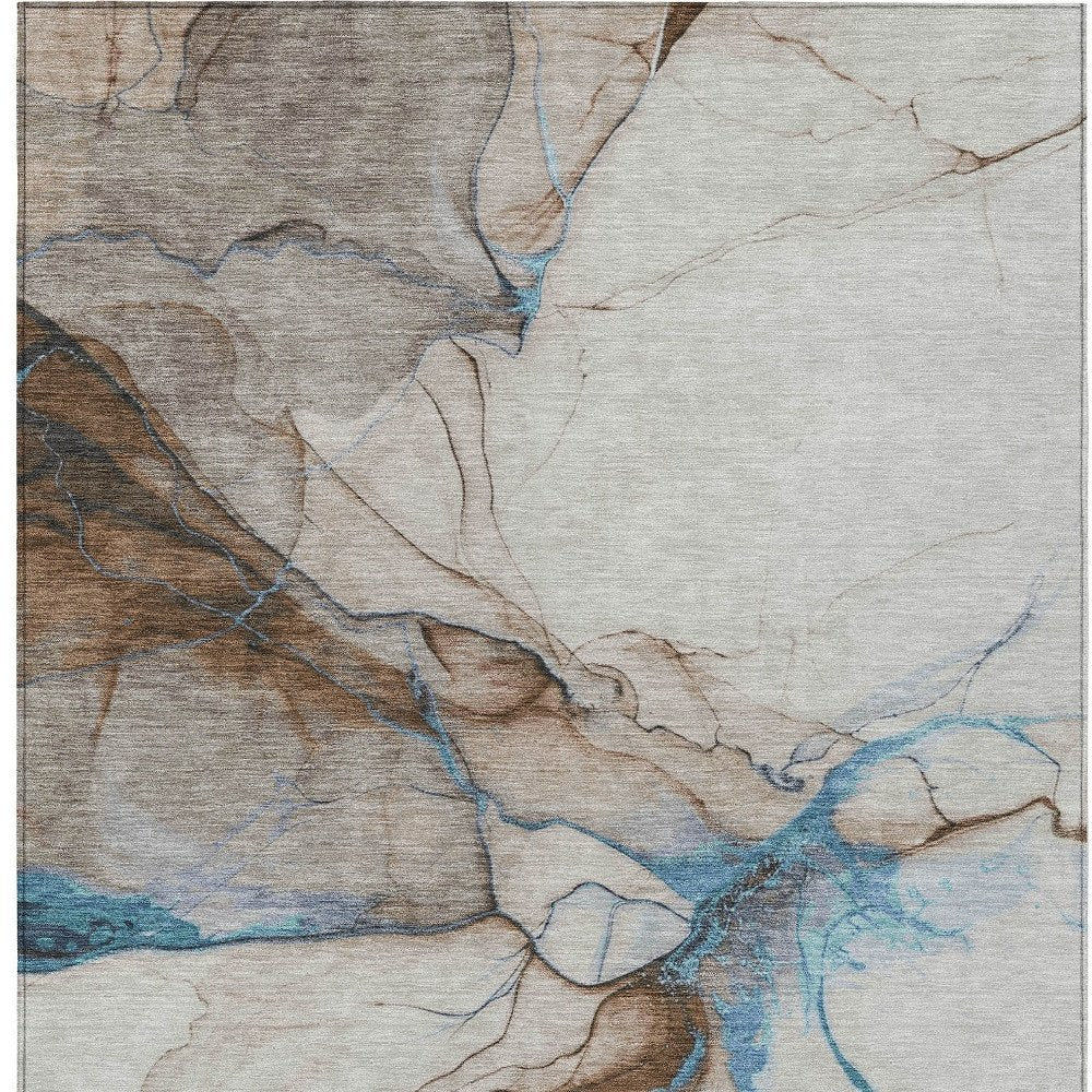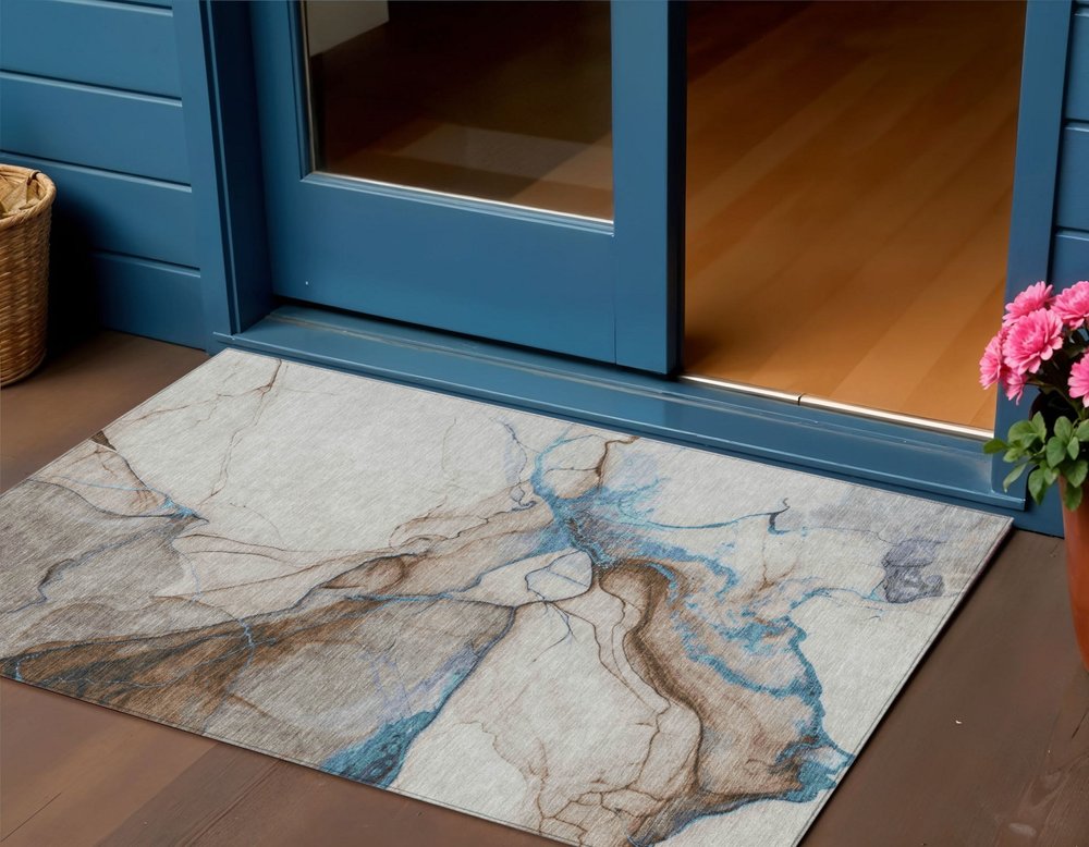 More from 3' X 5' Beige And Blue Abstract Washable Indoor Outdoor Area Rug Collection
