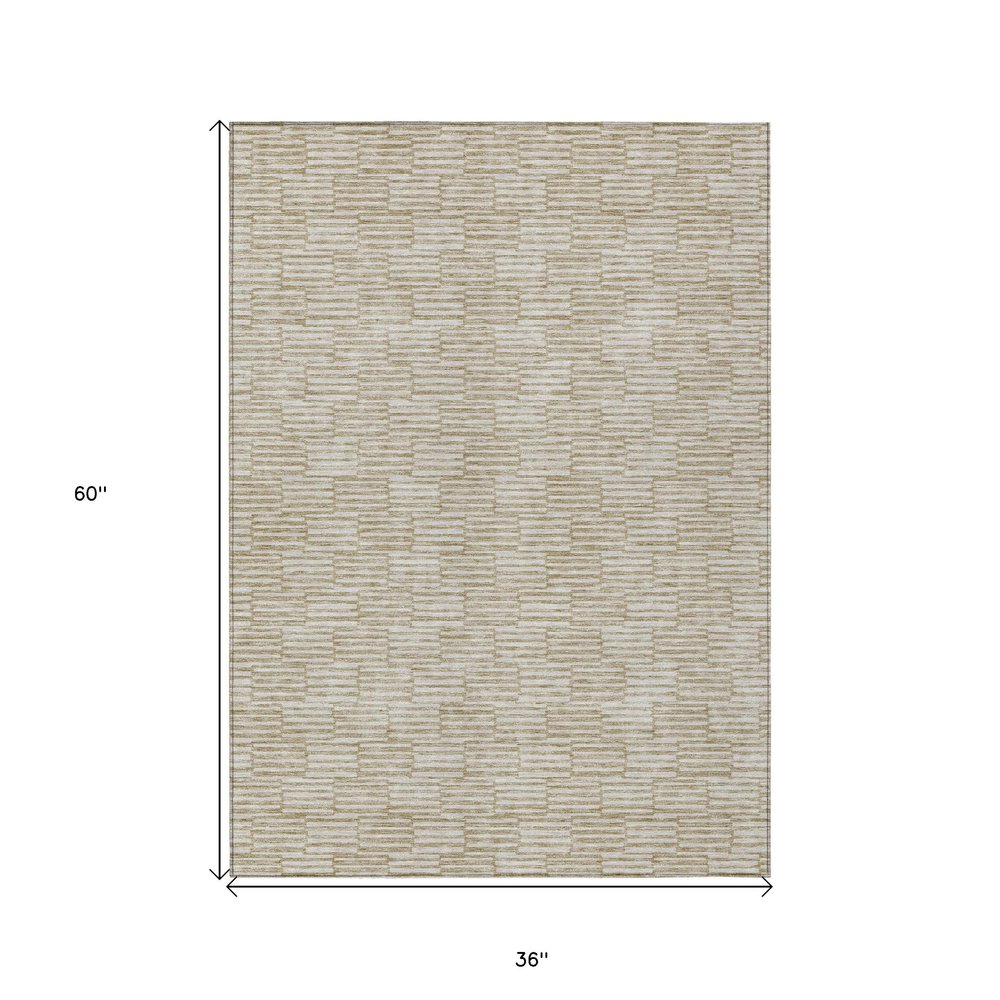 Set an inviting tone in your space with this 3-foot x 5-foot beige and ivory geometric washable indoor outdoor area rug. This rectangle shaped rug features a geometric design that will work well both indoors or out. A classic shape marries with good looking design for your living room, hall, bedroom, porch, patio, or poolside. Ideal for outdoor spaces or high traffic areas with kids and pets, this rug is made from heavy duty polyester that is stain resistant to help repel water, dirt, and stains. Versatile in use, durable, and easy to maintain, this rug is an ideal solution to add a decorative and inviting touch to your indoor or outdoor space. 36-inch h x 60-inch w x 0.19-inch d.