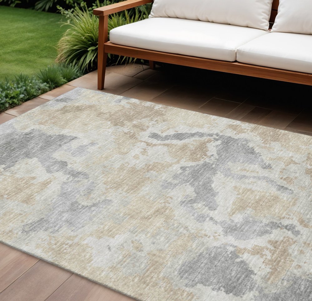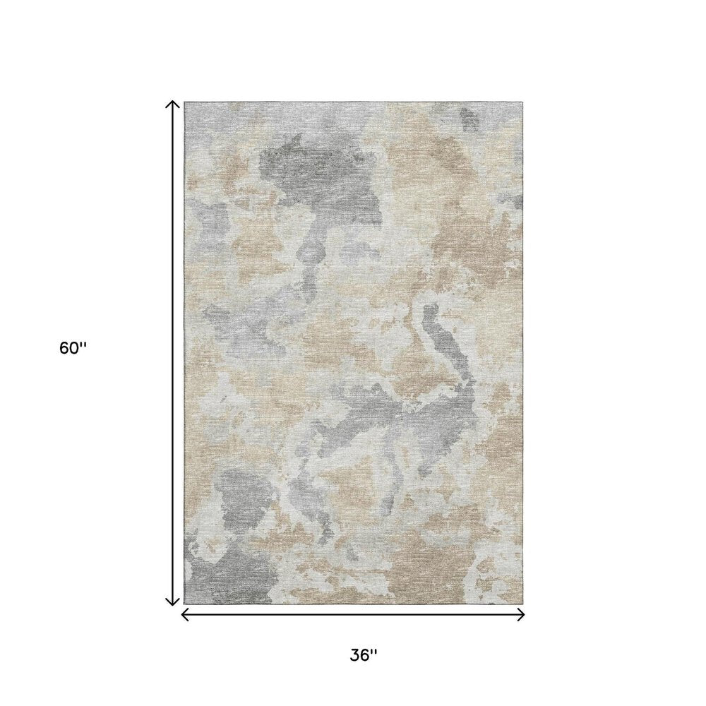More from 3' X 5' Beige Charcoal And Gray Abstract Washable Indoor Outdoor Area Rug Collection
