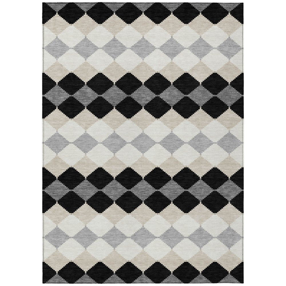 This 3-foot x 5-foot black ivory and beige geometric washable indoor outdoor area rug, is a great way to add warmth to a room. This rectangle shaped rug features a geometric design that will work well both indoors or out. A classic shape marries with good looking design for your living room, hall, bedroom, porch, patio, or poolside. Ideal for outdoor spaces or high traffic areas with kids and pets, this rug is made from heavy duty polyester that is stain resistant to help repel water, dirt, and stains. Makes a great way to dress up your patio, porch, or poolside, but also works well as a durable and easy to maintain option in the kitchen, family room, or mudroom. 36-inch h x 60-inch w x 0.19-inch d.