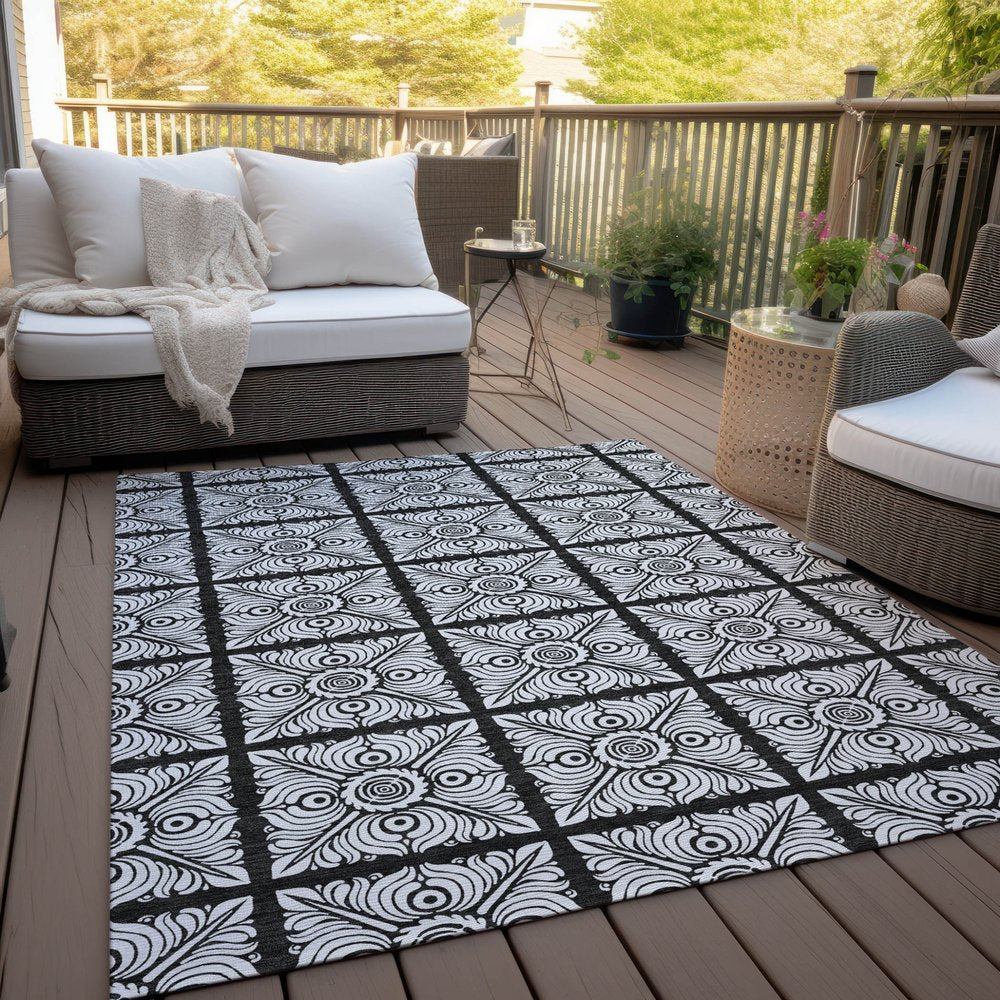 Add great coloration and comfortable texture to your space with this 3-foot x 5-foot black ivory and gray medallion washable indoor outdoor area rug. This rectangle shaped rug features a medallion design that will work well both indoors or out. A classic shape marries with good looking design for your living room, hall, bedroom, porch, patio, or poolside. The coloration of this rug infuses an updated and modern vibe into your space. Ideal for outdoor spaces or high traffic areas with kids and pets, this rug is made from heavy duty polyester that is stain resistant to help repel water, dirt, and stains. Versatile in use, durable, and easy to maintain, this rug is an ideal solution to add a decorative and inviting touch to your indoor or outdoor space. 36-inch h x 60-inch w x 0.19-inch d.