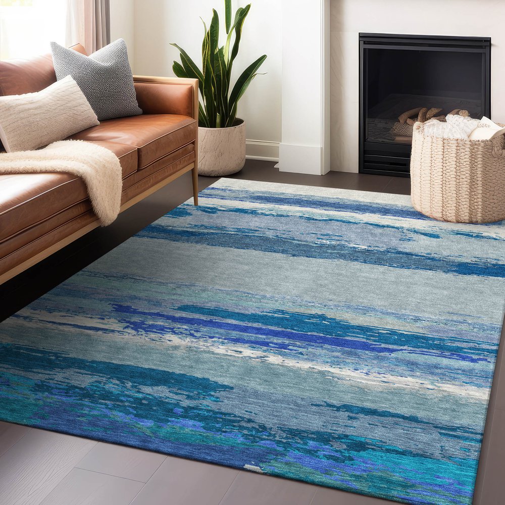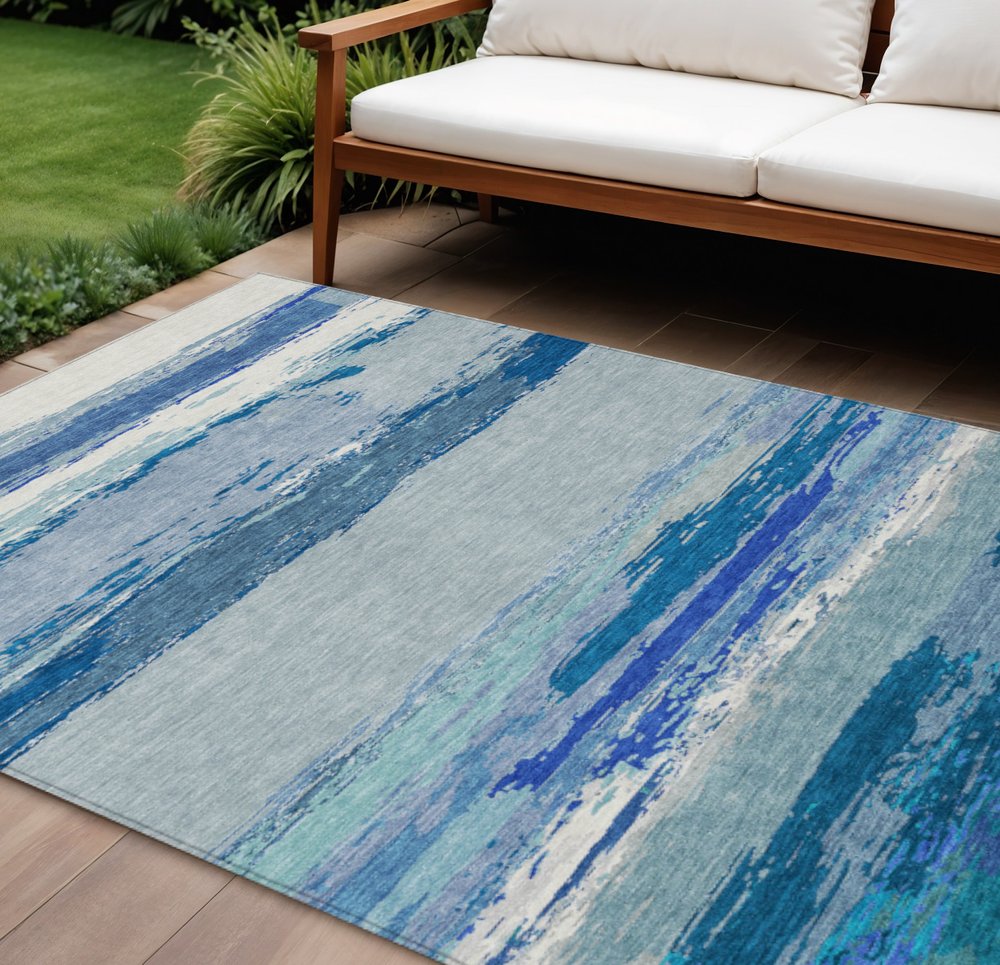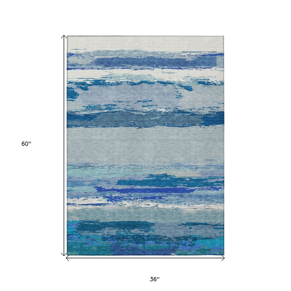 More from 3' X 5' Blue Abstract Washable Indoor Outdoor Area Rug Collection