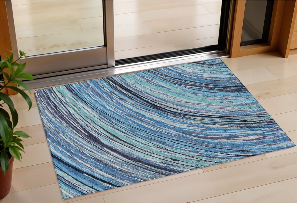 More from 3' X 5' Blue Aqua And Ivory Abstract Washable Indoor Outdoor Area Rug Collection