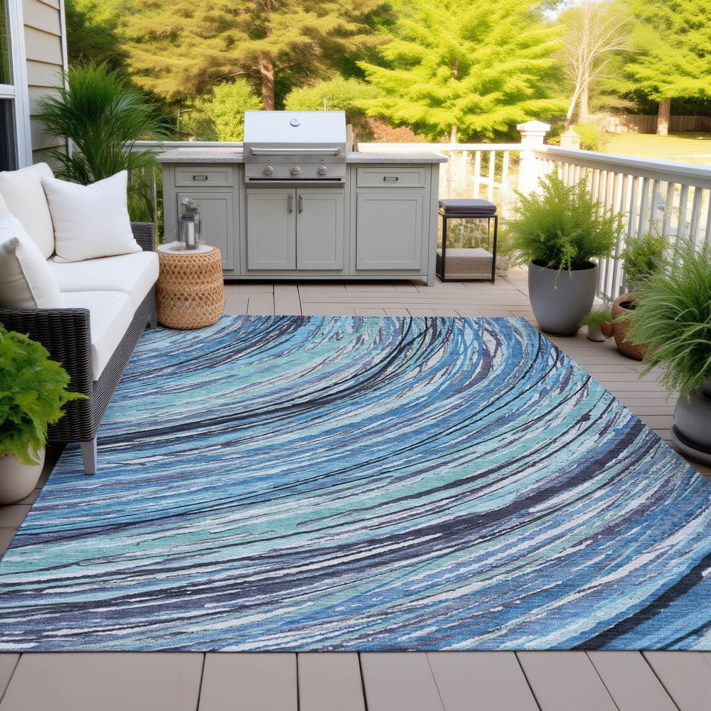 Add some artistry to your room with this 3-foot x 5-foot blue aqua and ivory abstract washable indoor outdoor area rug. This rectangle shaped rug features a abstract design that will work well both indoors or out. A classic shape marries with good looking design for your living room, hall, bedroom, porch, patio, or poolside. Ideal for outdoor spaces or high traffic areas with kids and pets, this rug is made from heavy duty polyester that is stain resistant to help repel water, dirt, and stains. Versatile in use, durable, and easy to maintain, this rug is an ideal solution to add a decorative and inviting touch to your indoor or outdoor space. 36-inch h x 60-inch w x 0.19-inch d.