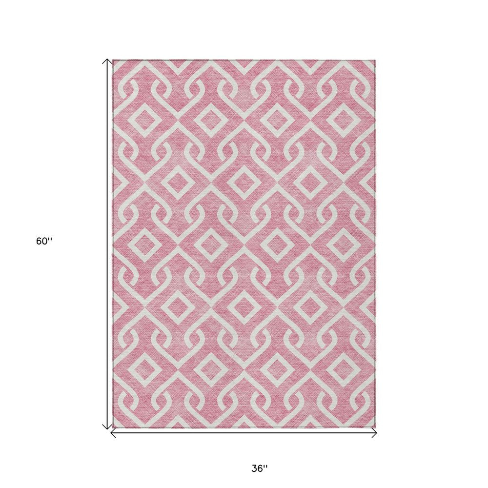 More from 3' X 5' Blush And Ivory Geometric Washable Indoor Outdoor Area Rug Collection