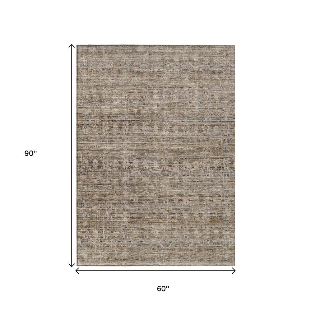 More from 3' X 5' Brown And Beige Striped Washable Indoor Outdoor Area Rug Collection
