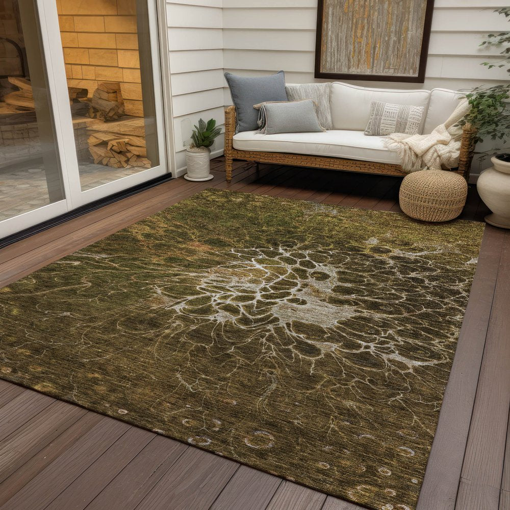 Set an inviting tone in your space with this 3-foot x 5-foot chocolate and gray abstract washable indoor outdoor area rug. This rectangle shaped rug features a abstract design that will work well both indoors or out. A classic shape marries with good looking design for your living room, hall, bedroom, porch, patio, or poolside. Ideal for outdoor spaces or high traffic areas with kids and pets, this rug is made from heavy duty polyester that is stain resistant to help repel water, dirt, and stains. Versatile in use, durable, and easy to maintain, this rug is an ideal solution to add a decorative and inviting touch to your indoor or outdoor space. 36-inch h x 60-inch w x 0.19-inch d.