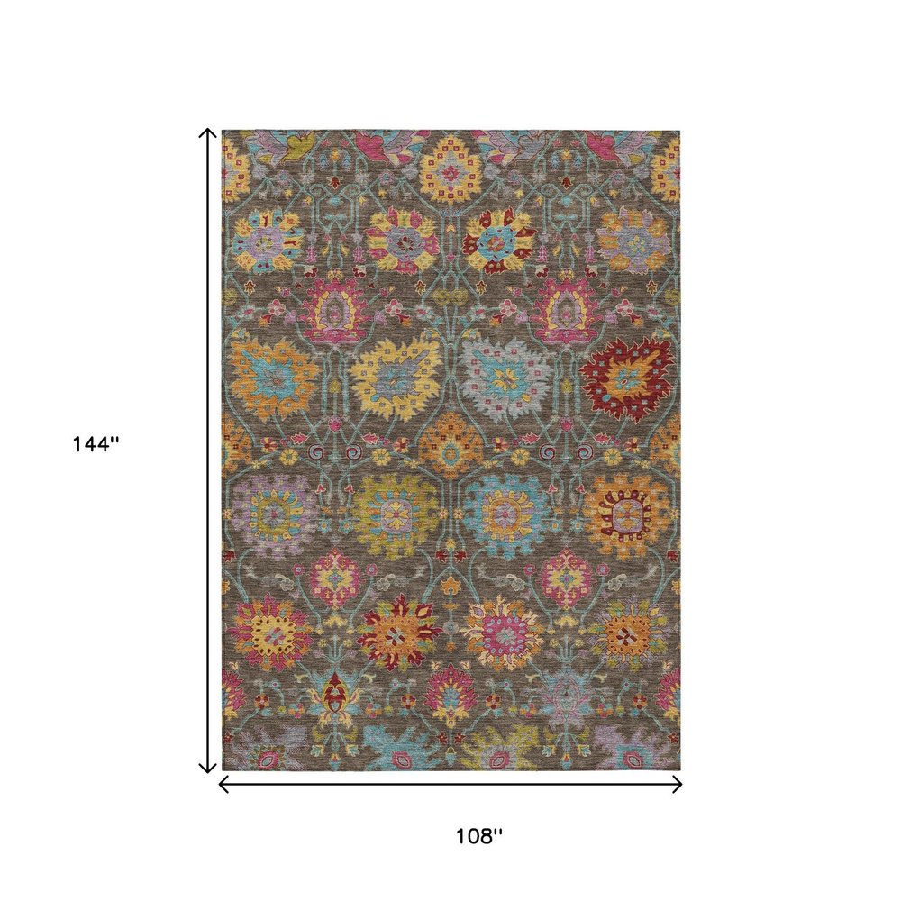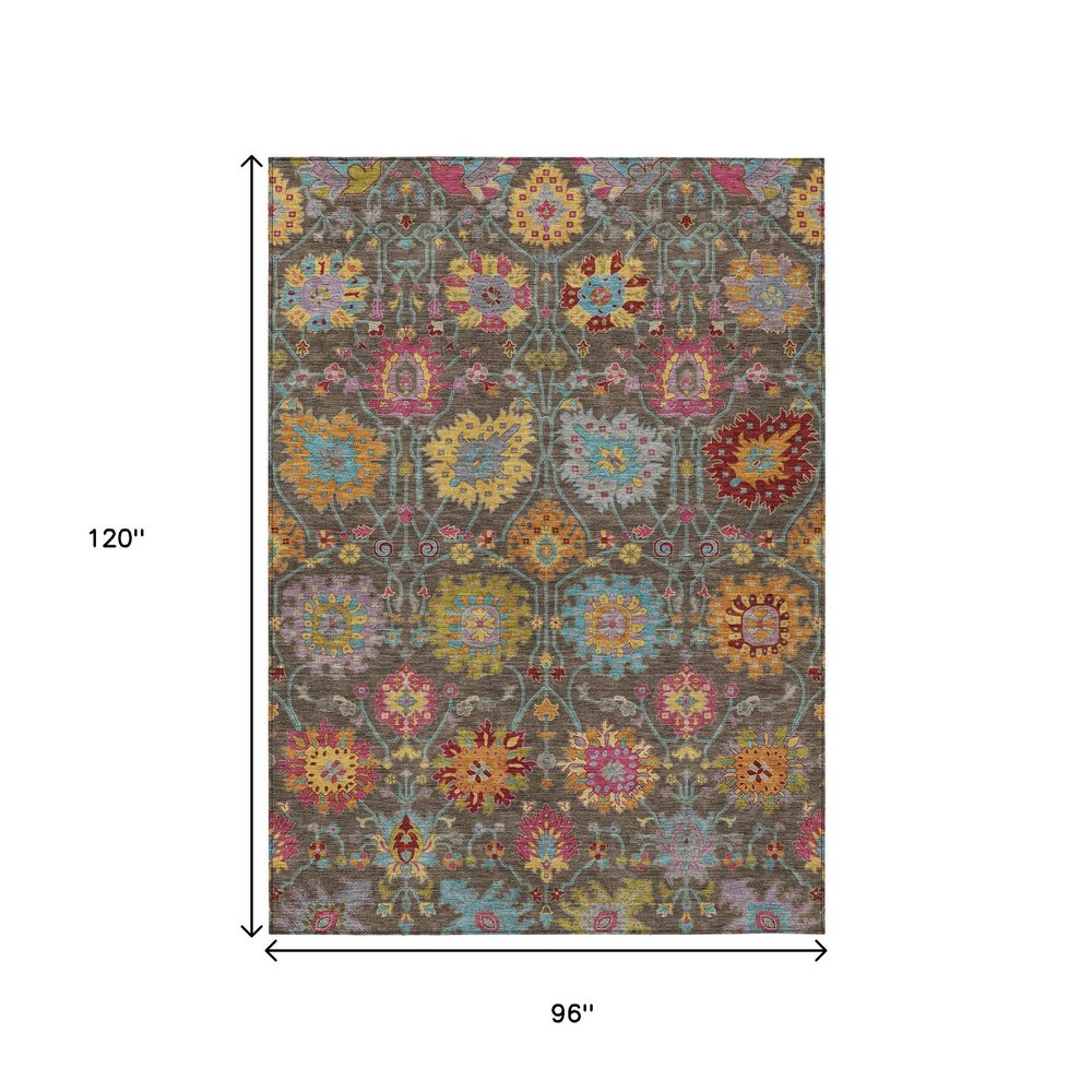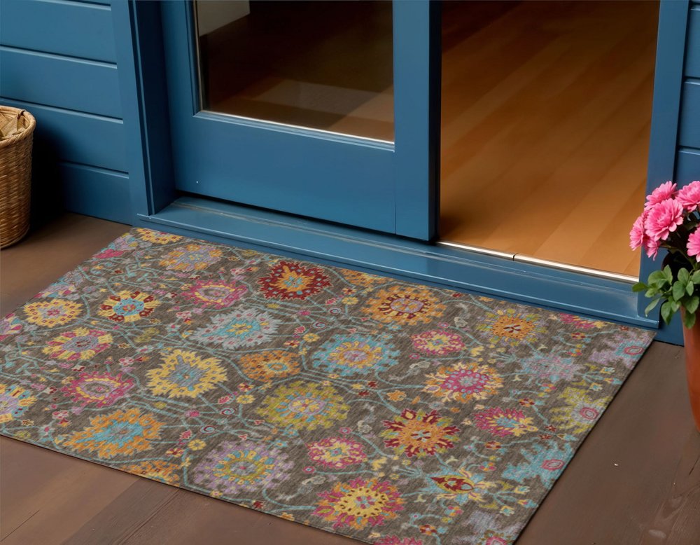 3' X 5' Chocolate Gold And Pink Damask Washable Indoor Outdoor Area Rug