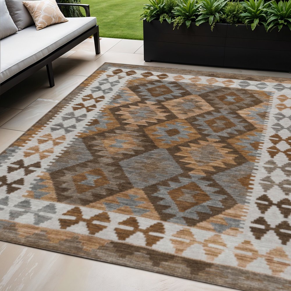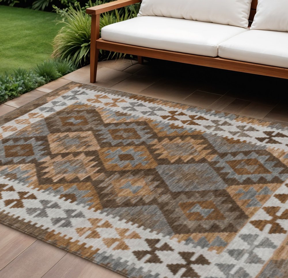 More from 3' X 5' Copper Ivory And Gray Tribal Washable Indoor Outdoor Area Rug Collection