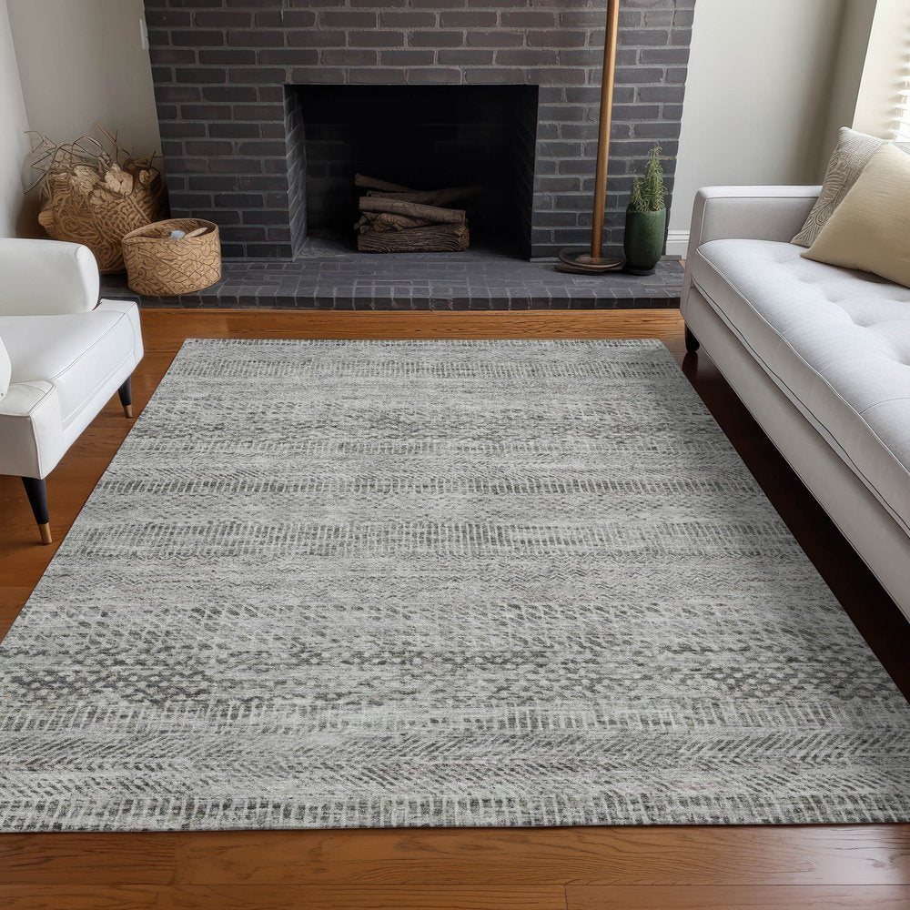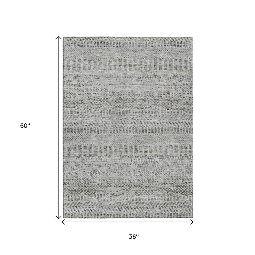 More from 3' X 5' Gray And Charcoal Striped Washable Indoor Outdoor Area Rug Collection