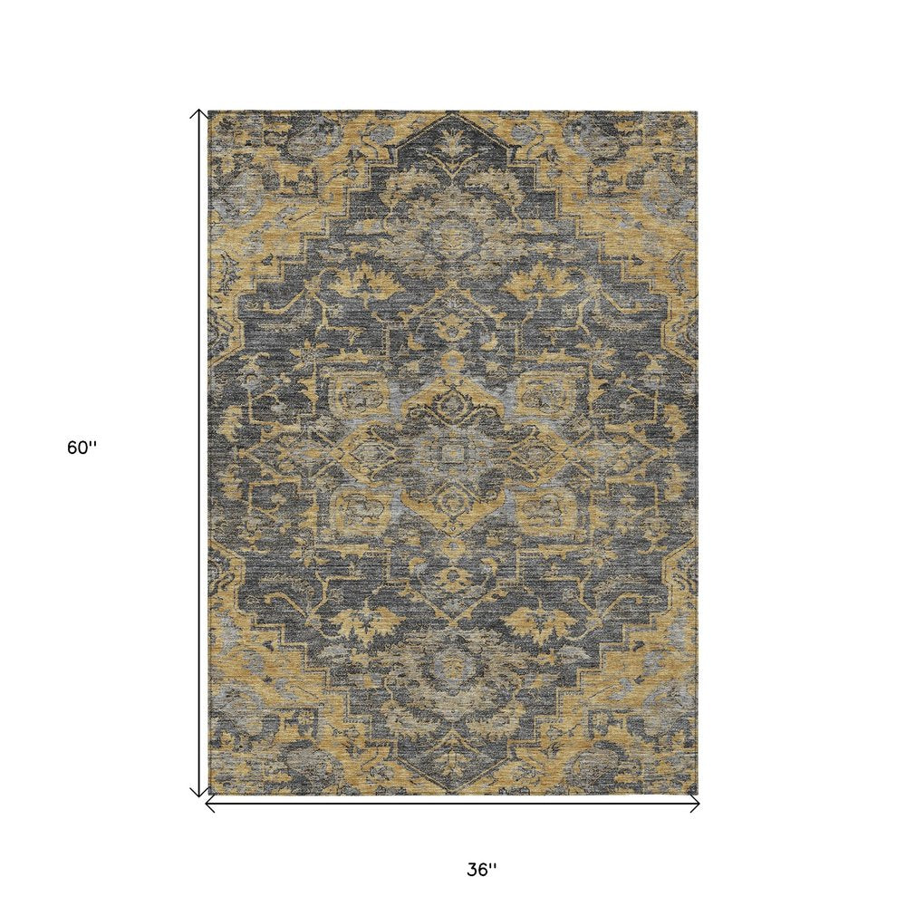 Set an inviting tone in your space with this 3-foot x 5-foot gray charcoal and silver oriental washable indoor outdoor area rug. This rectangle shaped rug features a oriental design that will work well both indoors or out. A classic shape marries with good looking design for your living room, hall, bedroom, porch, patio, or poolside. Ideal for outdoor spaces or high traffic areas with kids and pets, this rug is made from heavy duty polyester that is stain resistant to help repel water, dirt, and stains. Makes a great way to dress up your patio, porch, or poolside, but also works well as a durable and easy to maintain option in the kitchen, family room, or mudroom. 36-inch h x 60-inch w x 0.19-inch d.