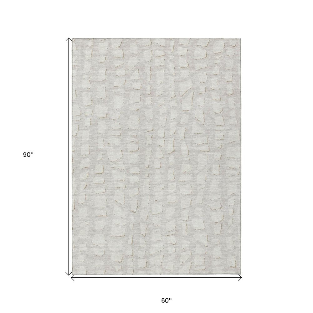 3' X 5' Ivory And Beige Abstract Washable Indoor Outdoor Area Rug