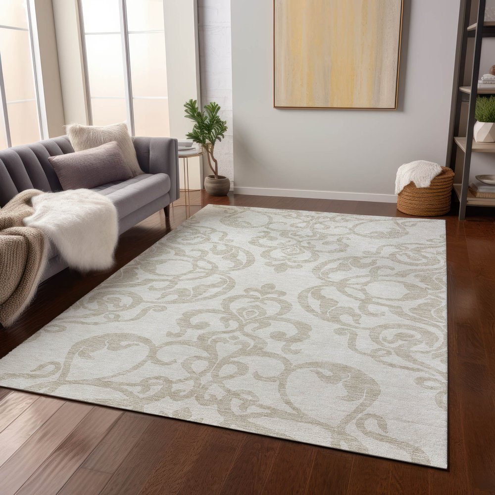 More from 3' X 5' Ivory And Beige Damask Washable Indoor Outdoor Area Rug Collection