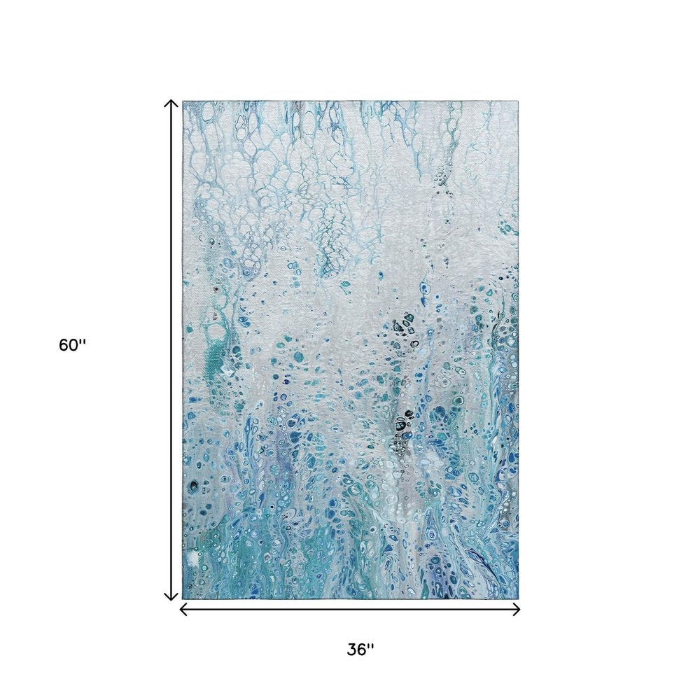 3' X 5' Light Blue And Ivory Abstract Washable Indoor Outdoor Area Rug