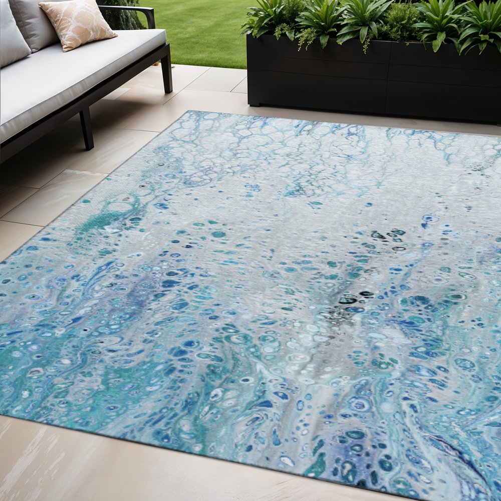 More from 3' X 5' Light Blue And Ivory Abstract Washable Indoor Outdoor Area Rug Collection