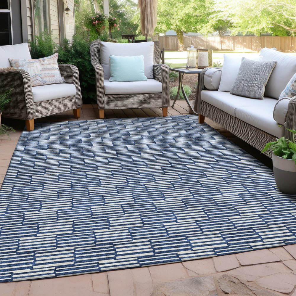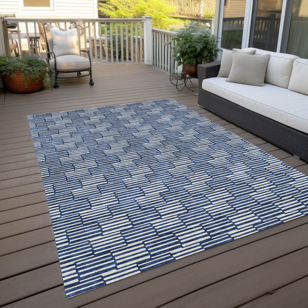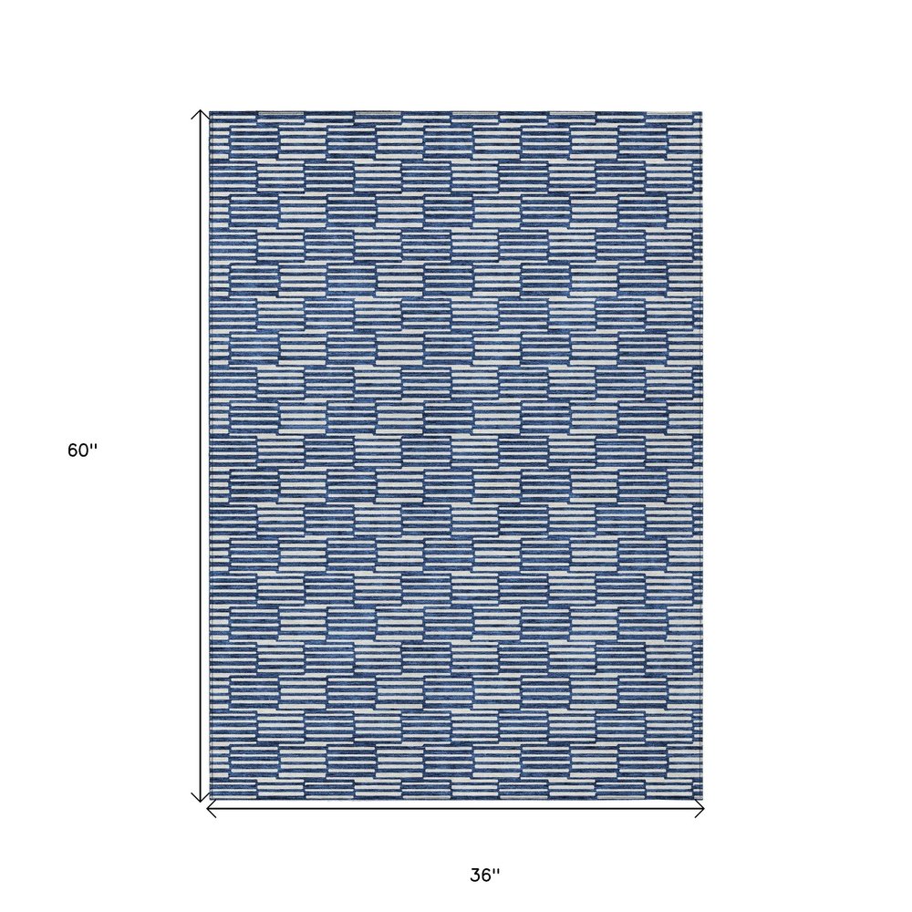 More from 3' X 5' Navy Blue And Ivory Geometric Washable Indoor Outdoor Area Rug Collection