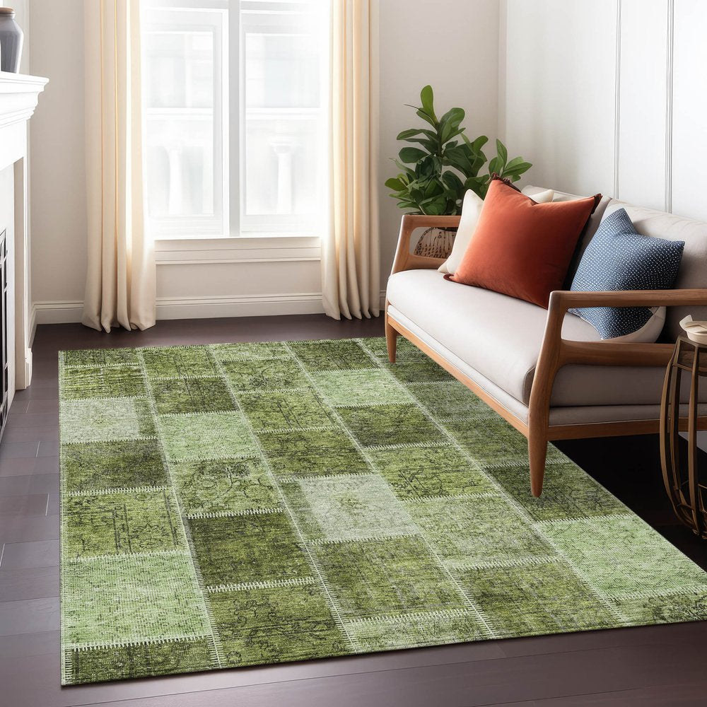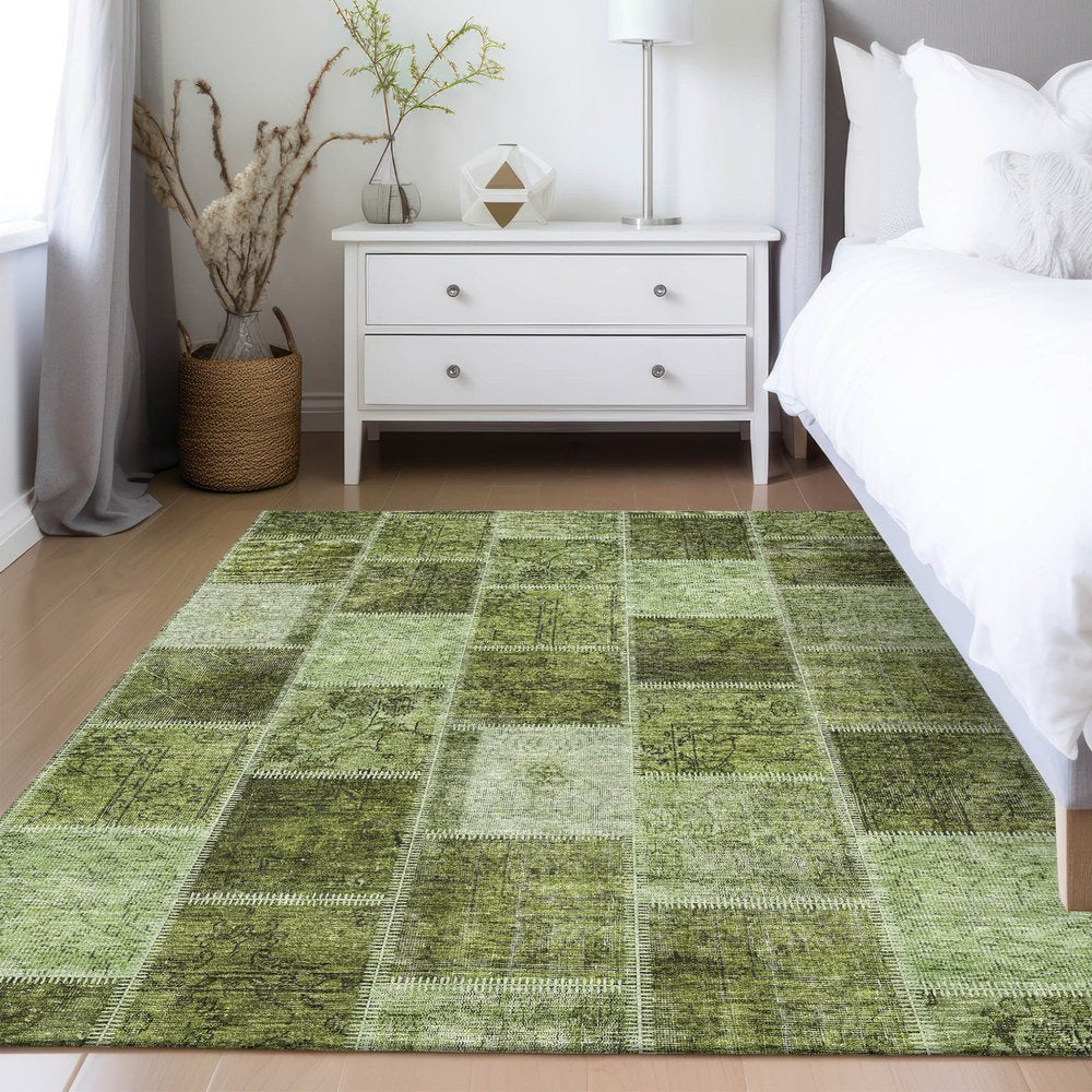 More from 3' X 5' Olive Green And Artichoke Green Patchwork Washable Indoor Outdoor Area Rug Collection
