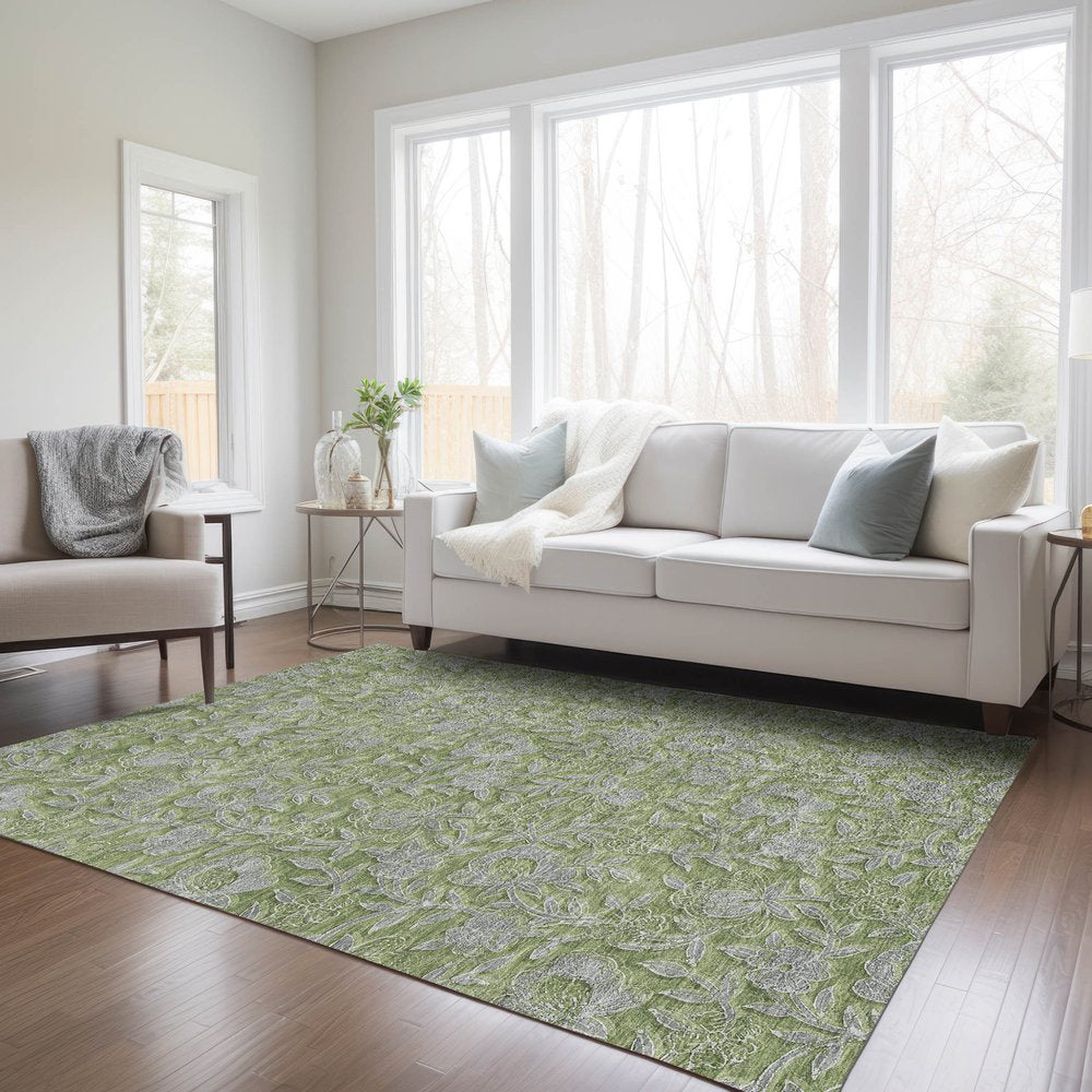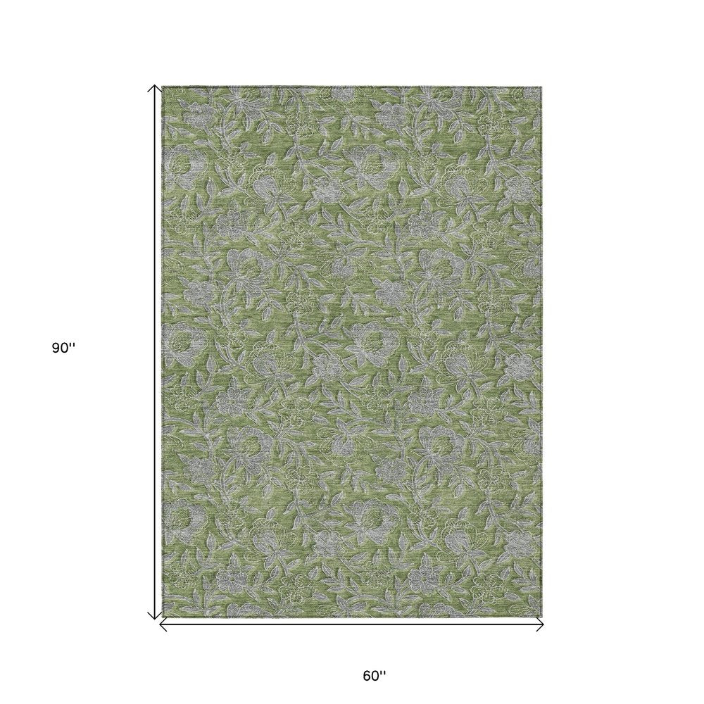 More from 3' X 5' Olive Green And Gray Floral Washable Indoor Outdoor Area Rug Collection