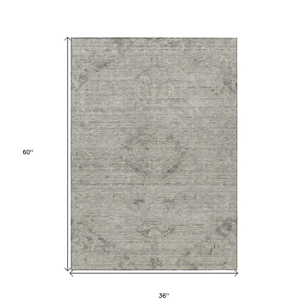 More from 3' X 5' Pewter And Beige Floral Washable Indoor Outdoor Area Rug Collection