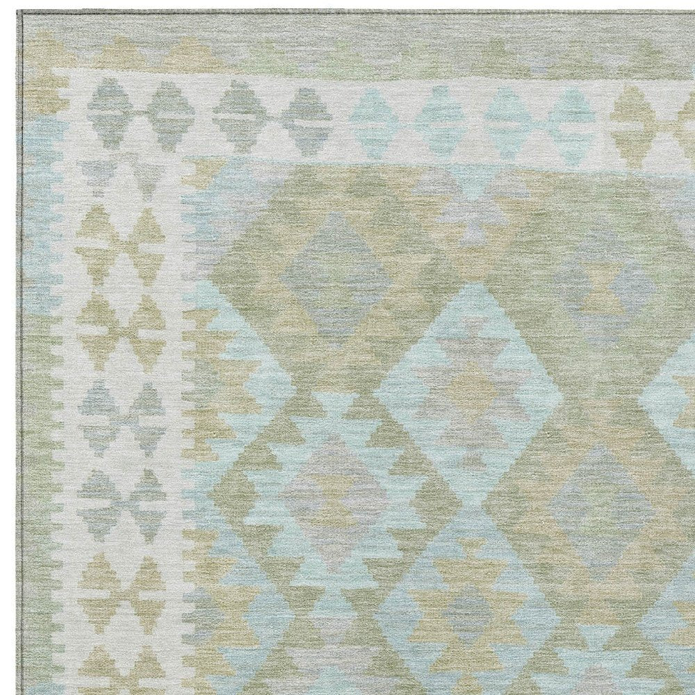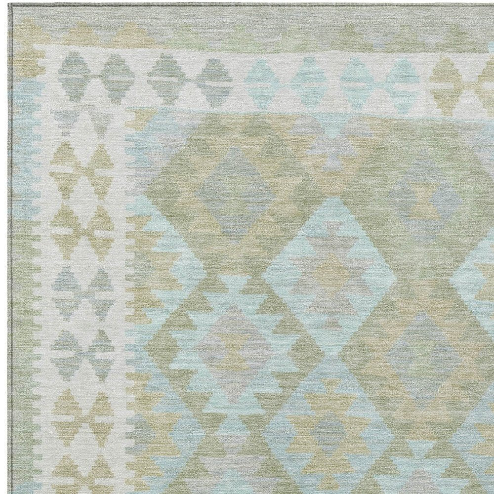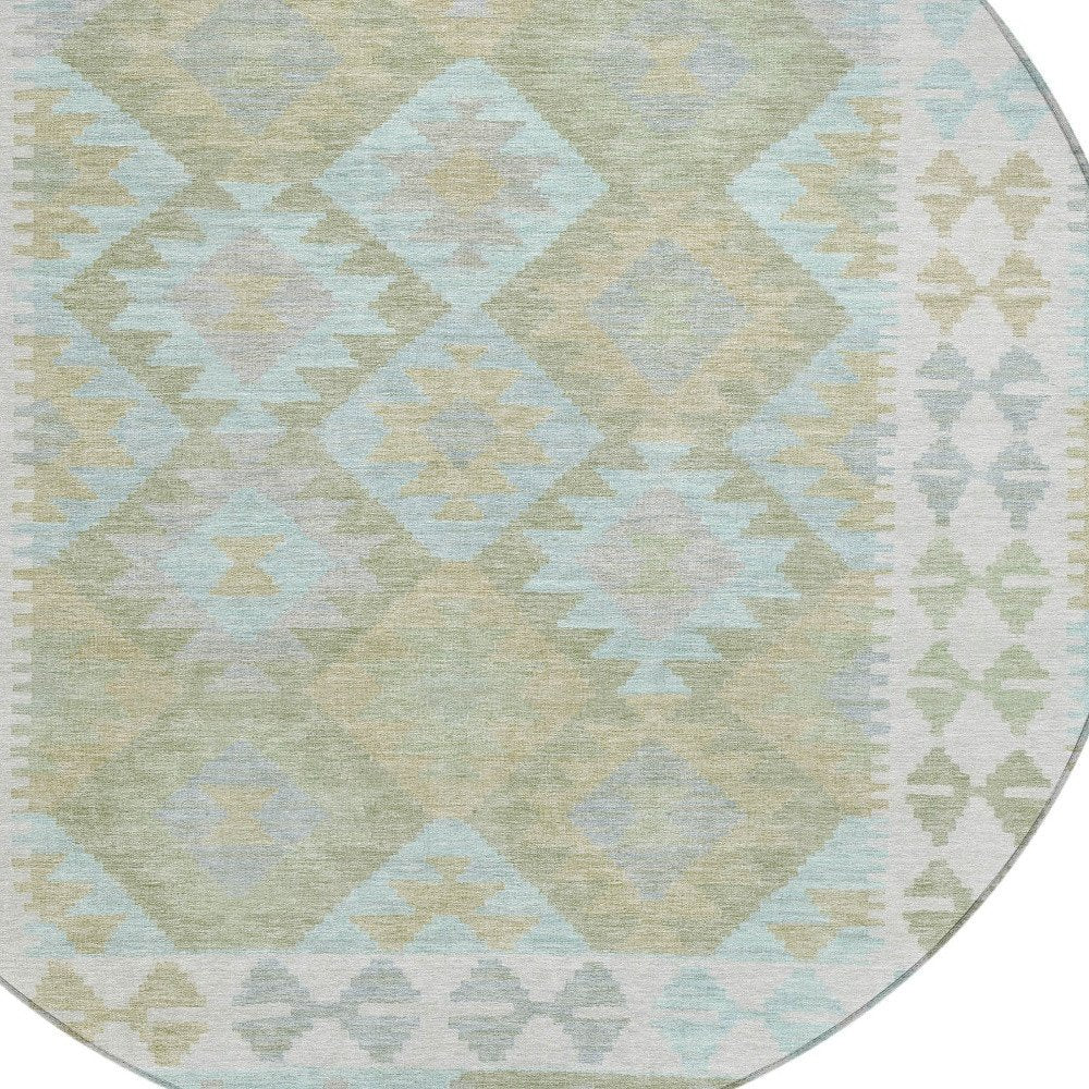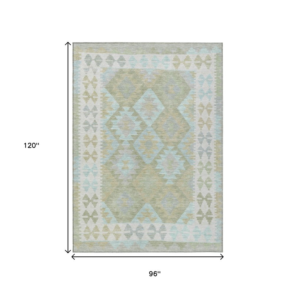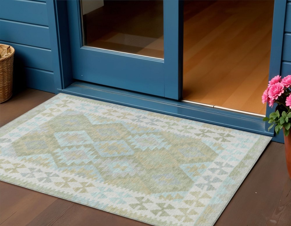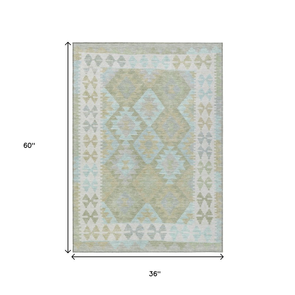 3' X 5' Sage Sky Blue And Copper Tribal Washable Indoor Outdoor Area Rug