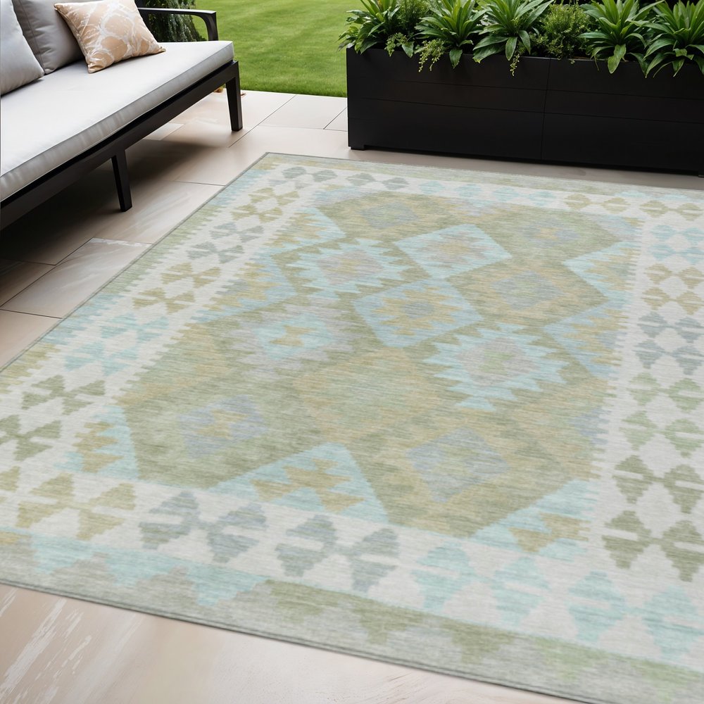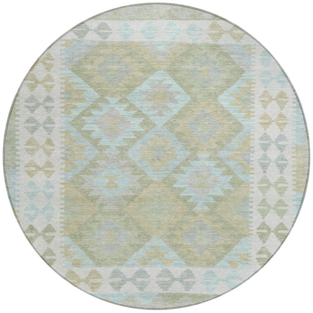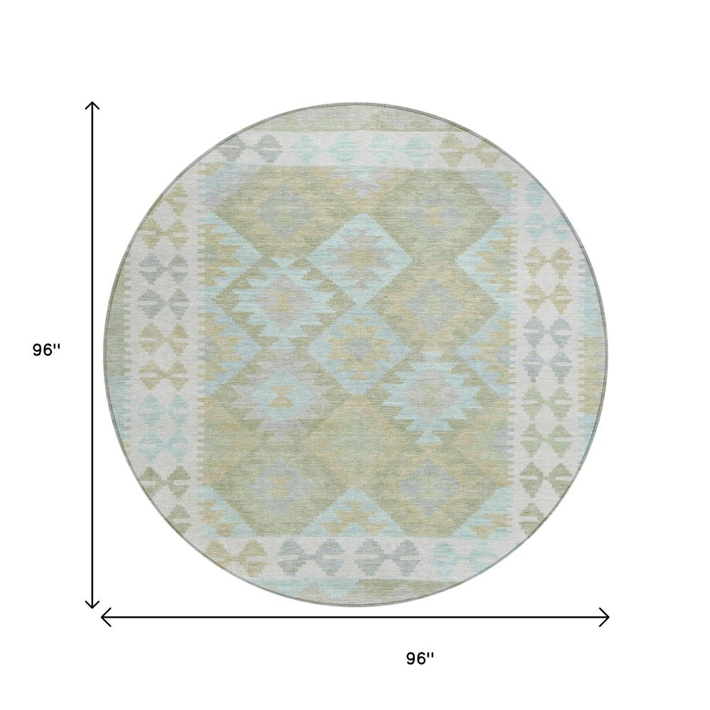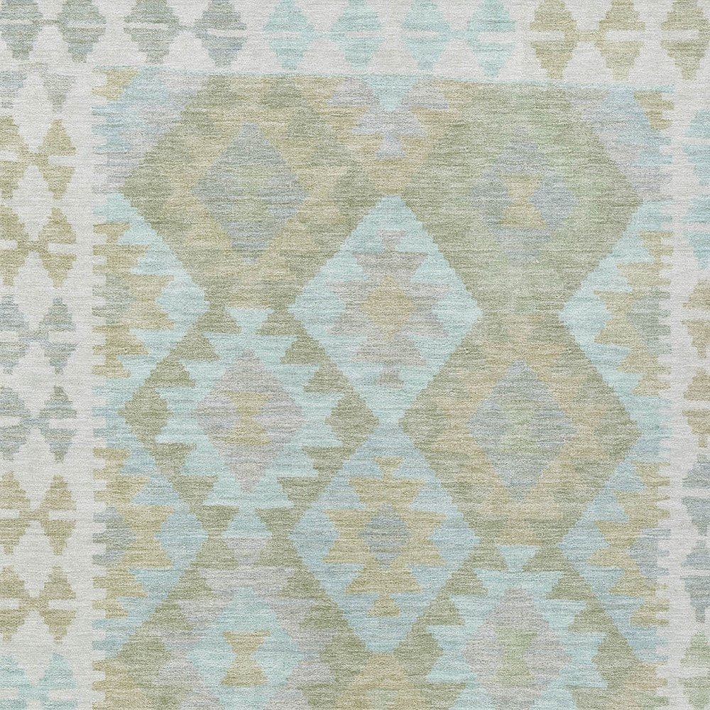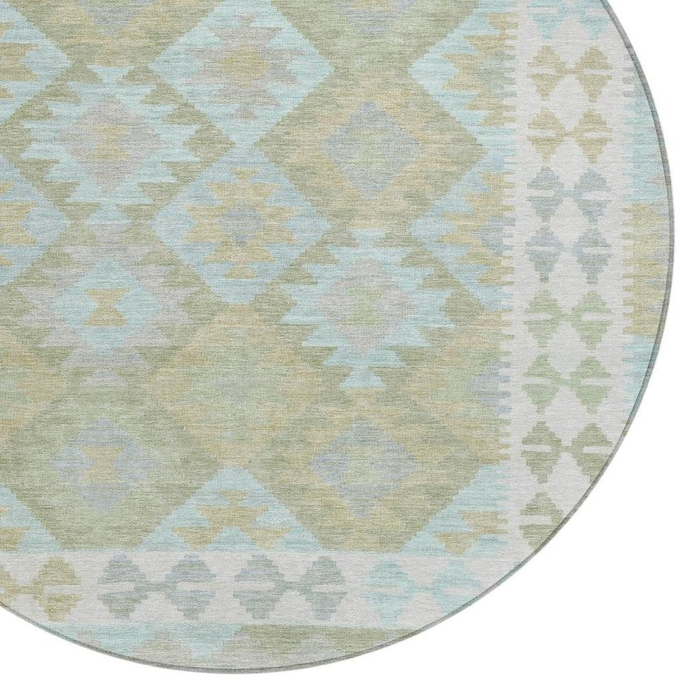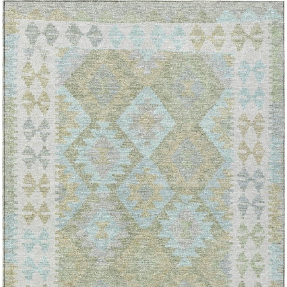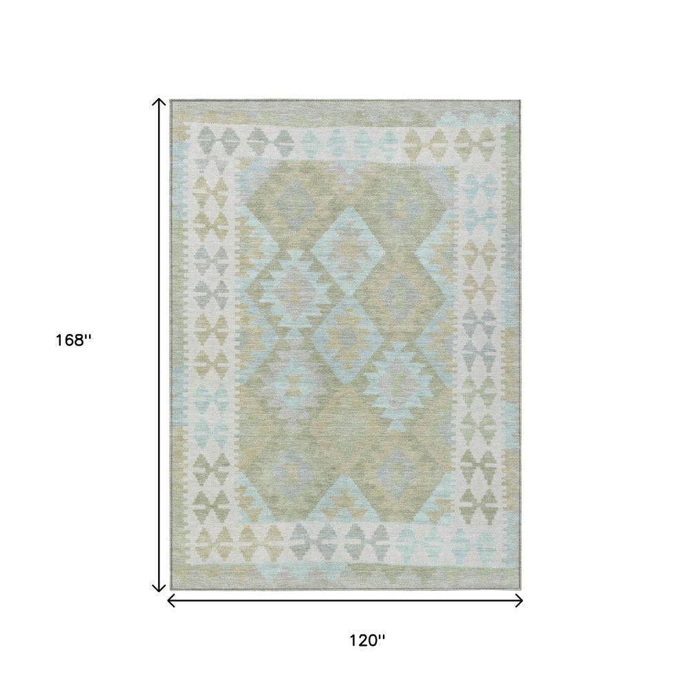 3' X 5' Sage Sky Blue And Copper Tribal Washable Indoor Outdoor Area Rug