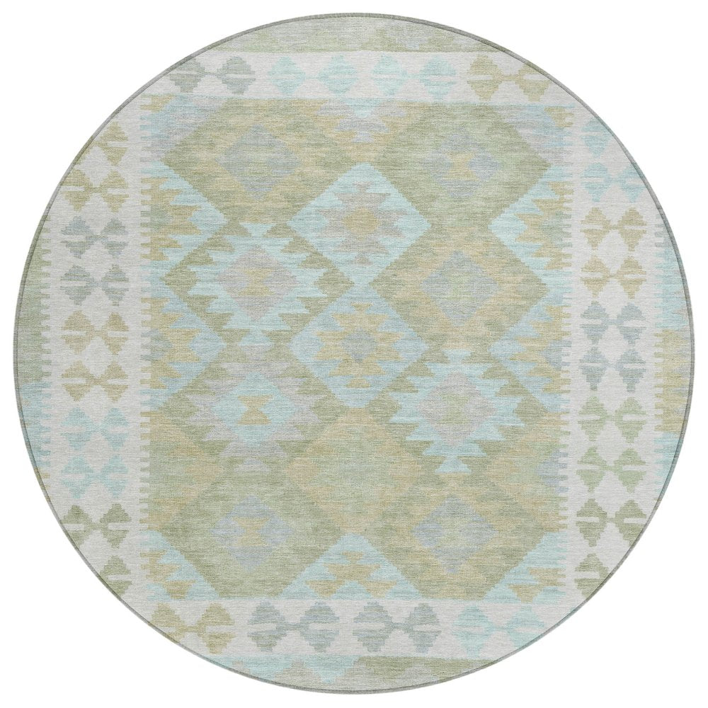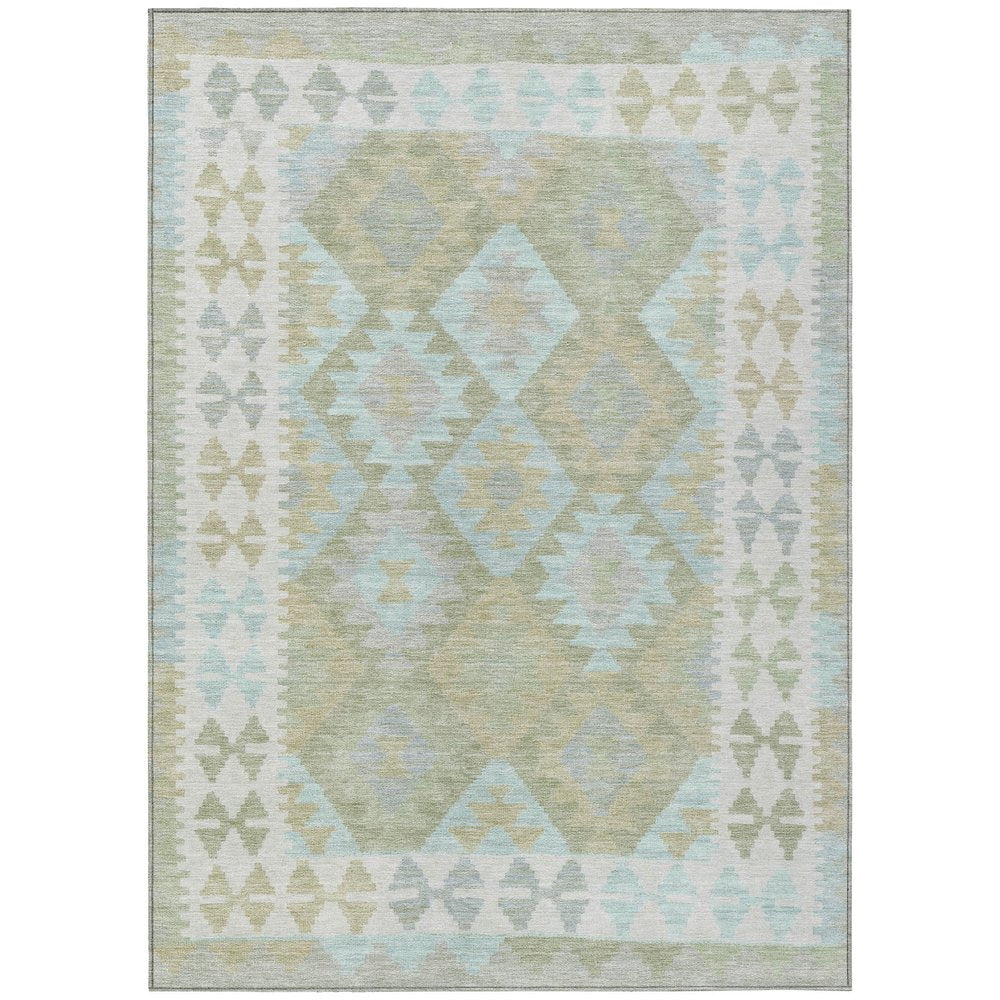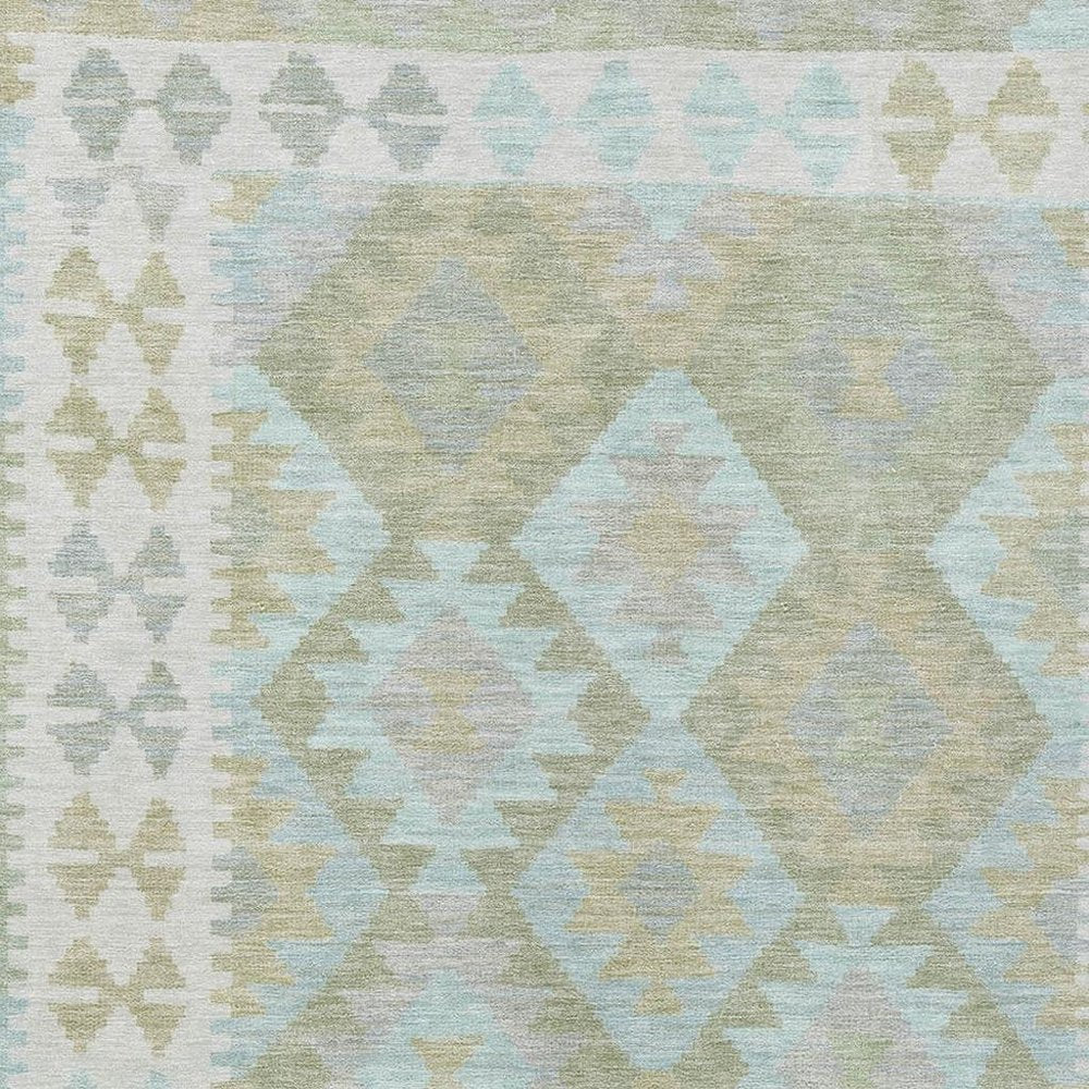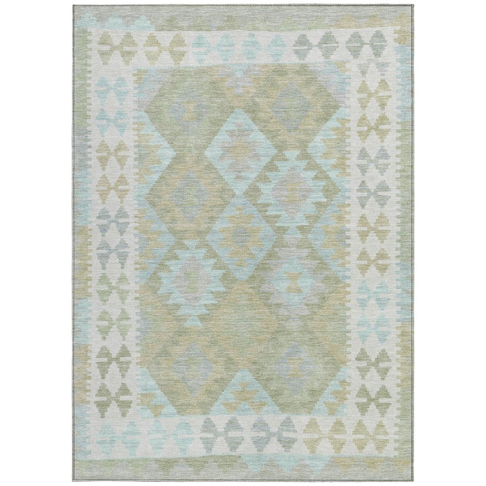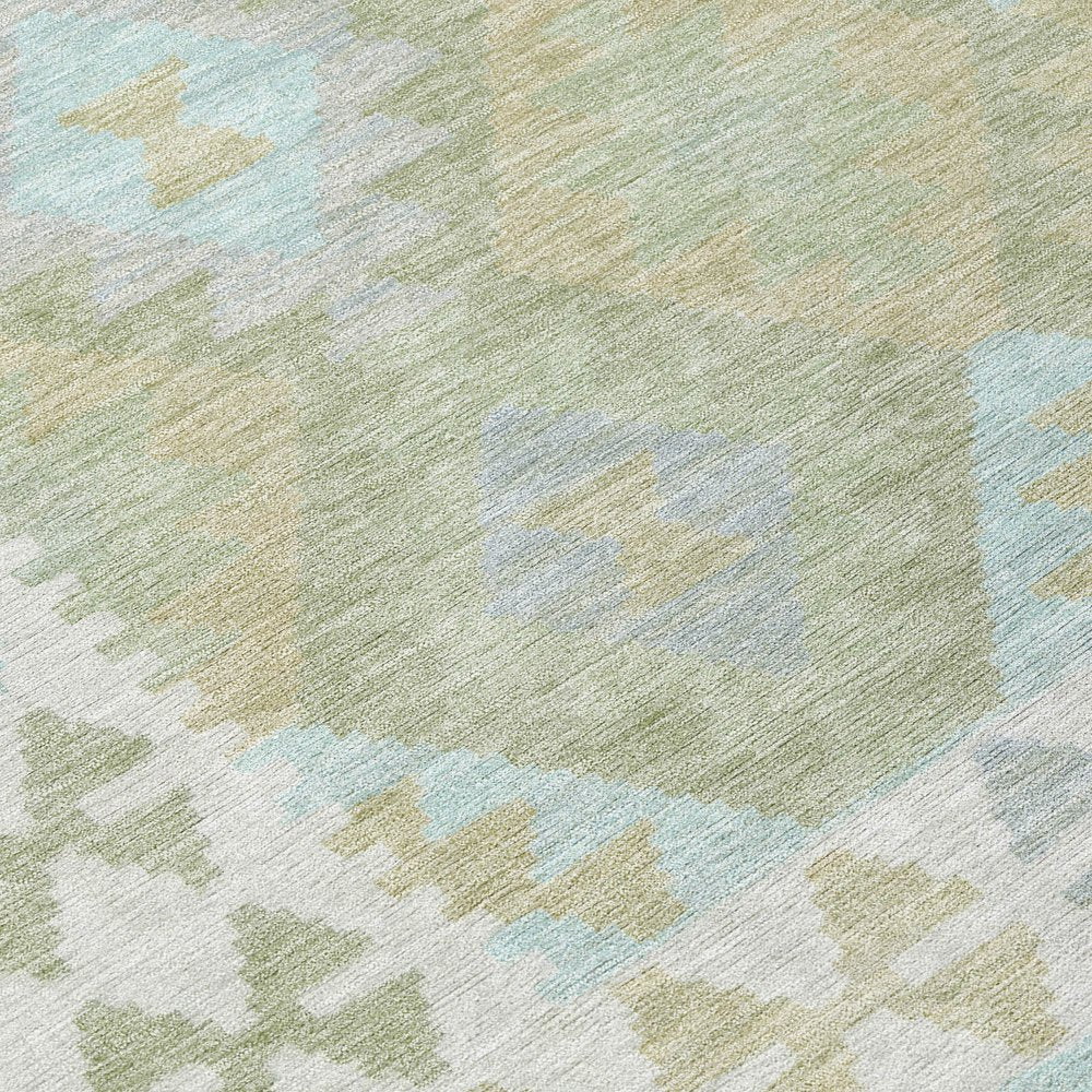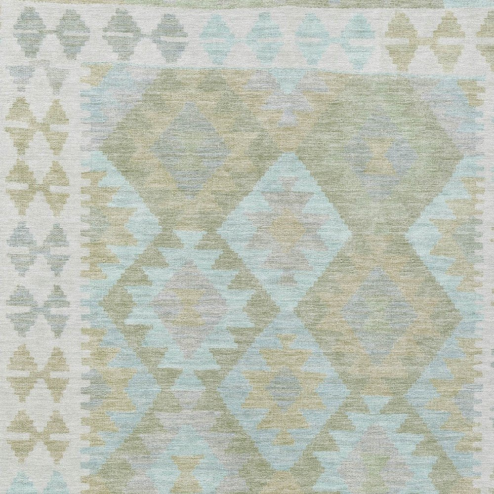 3' X 5' Sage Sky Blue And Copper Tribal Washable Indoor Outdoor Area Rug