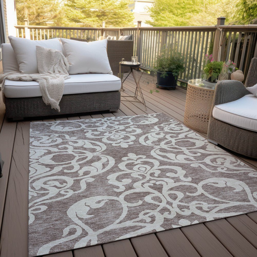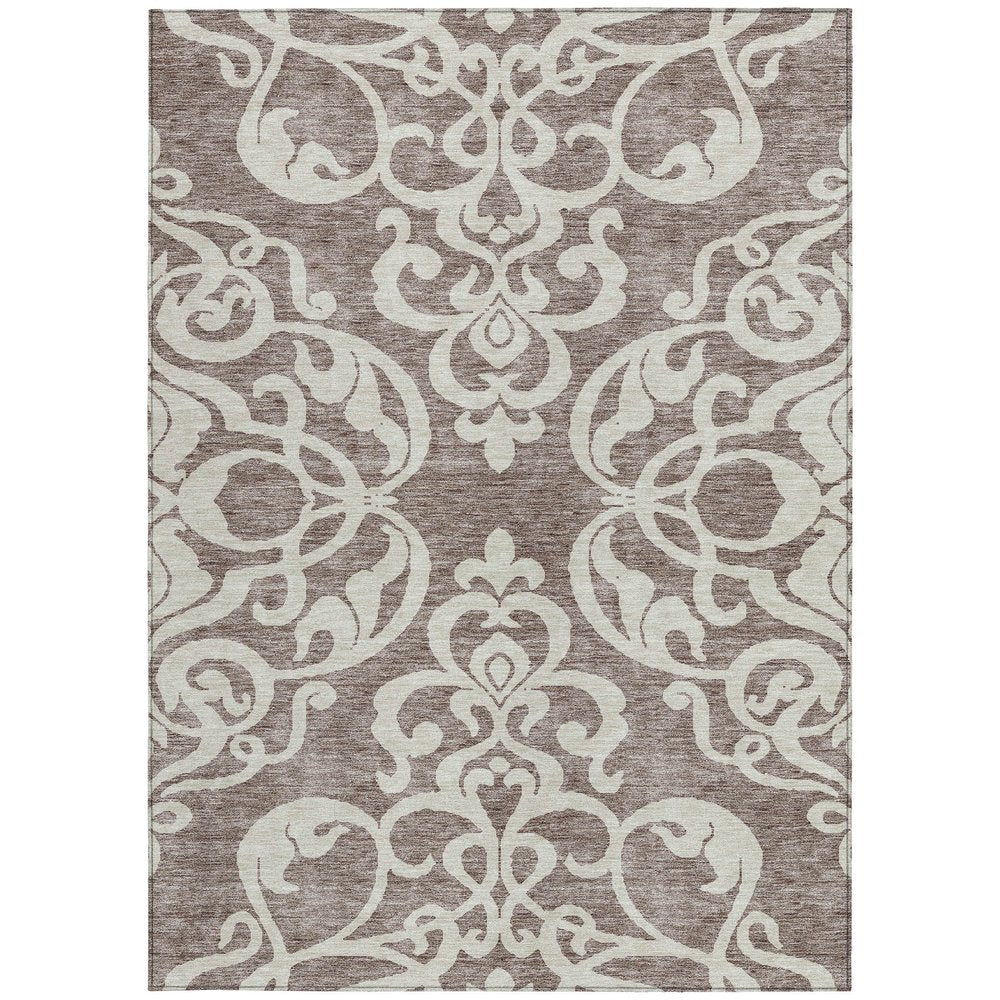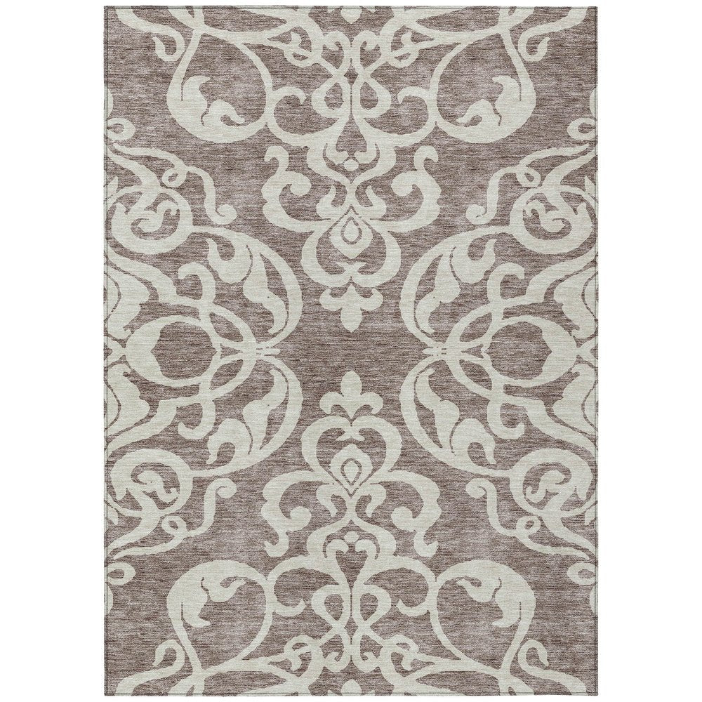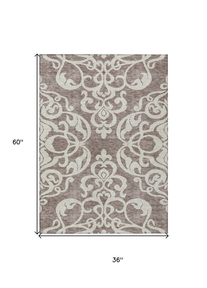 Set an inviting tone in your space with this 3-foot x 5-foot taupe and ivory damask washable indoor outdoor area rug. This rectangle shaped rug features a damask design that will work well both indoors or out. A classic shape marries with good looking design for your living room, hall, bedroom, porch, patio, or poolside. Ideal for outdoor spaces or high traffic areas with kids and pets, this rug is made from heavy duty polyester that is stain resistant to help repel water, dirt, and stains. Versatile in use, durable, and easy to maintain, this rug is an ideal solution to add a decorative and inviting touch to your indoor or outdoor space. 36-inch h x 60-inch w x 0.19-inch d.