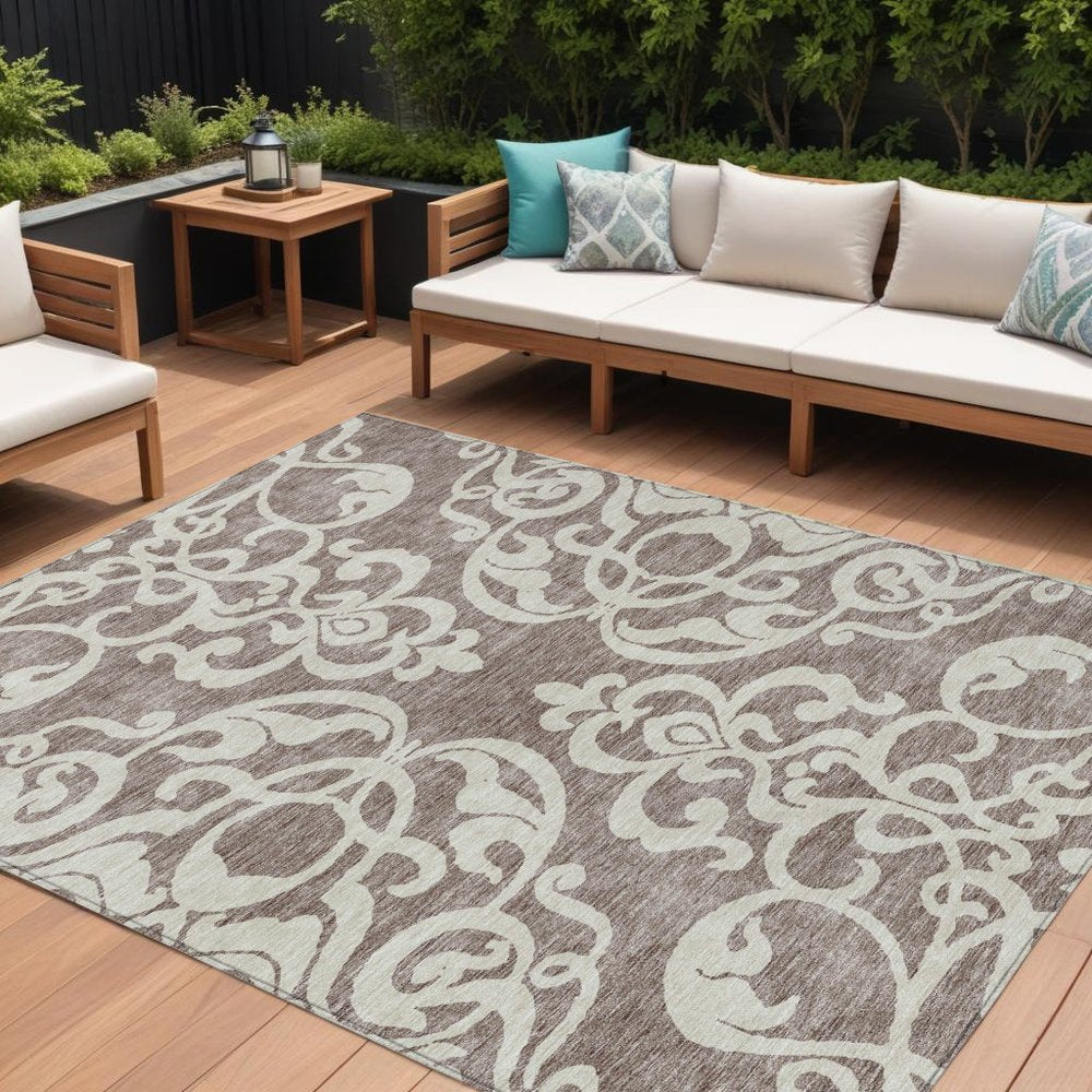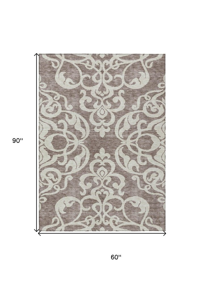 More from 3' X 5' Taupe And Ivory Damask Washable Indoor Outdoor Area Rug Collection
