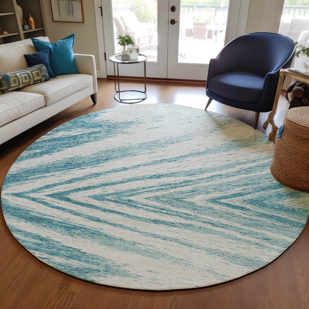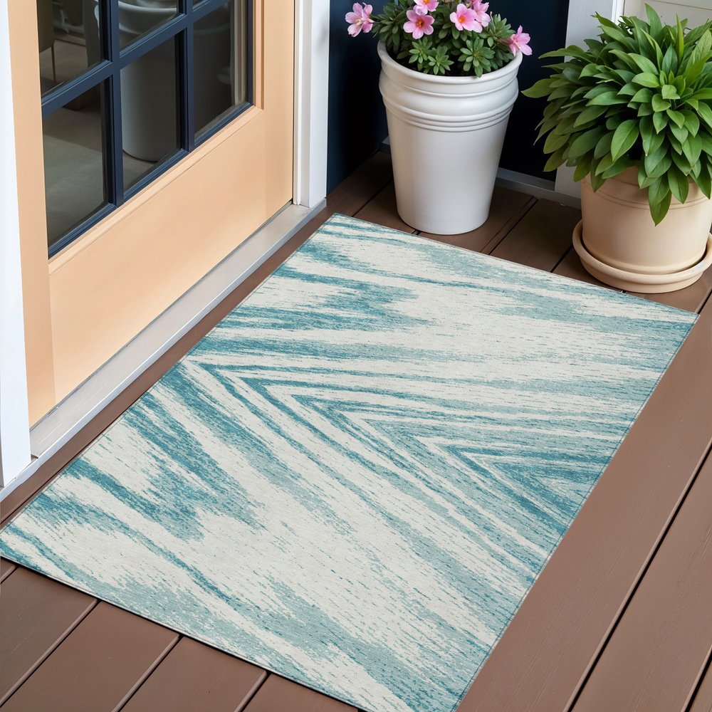 More from 3' X 5' Teal Blue And Ivory Abstract Washable Indoor Outdoor Area Rug Collection