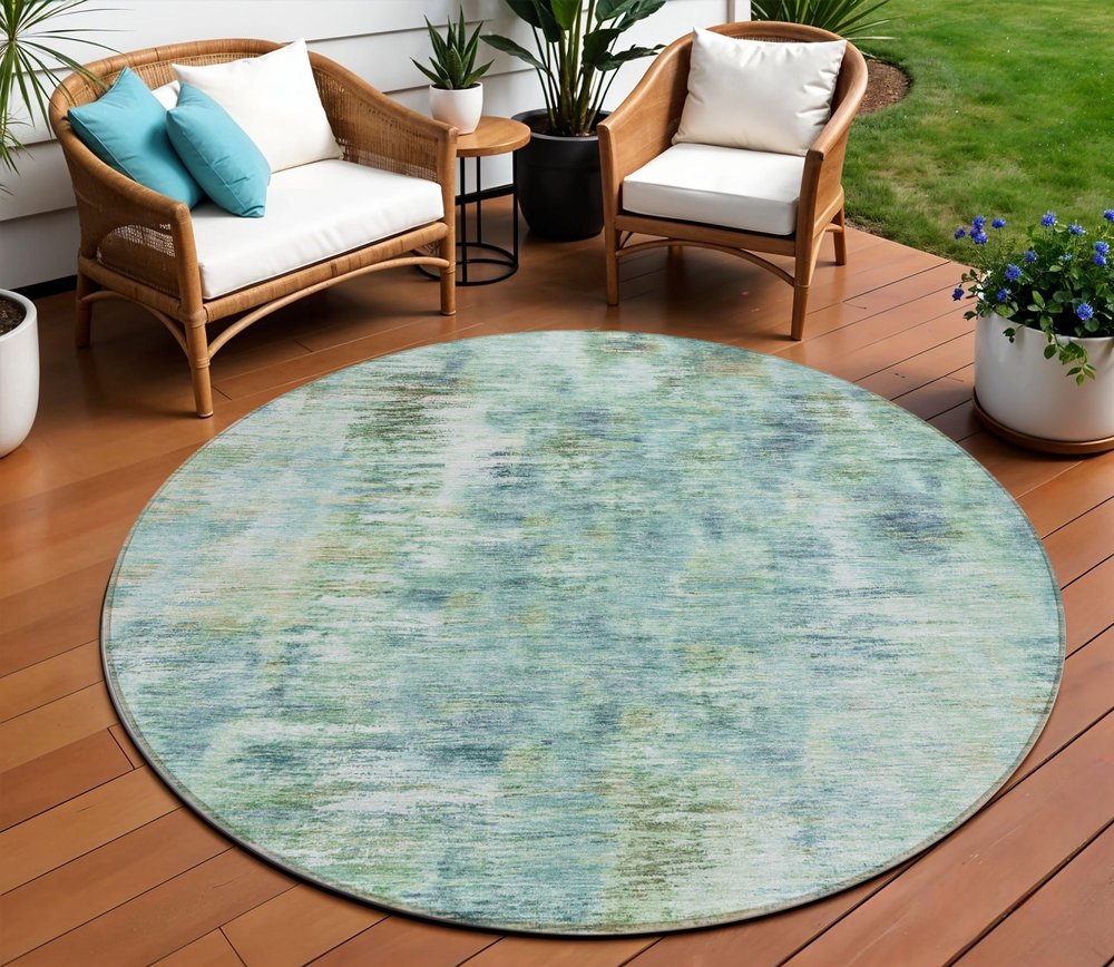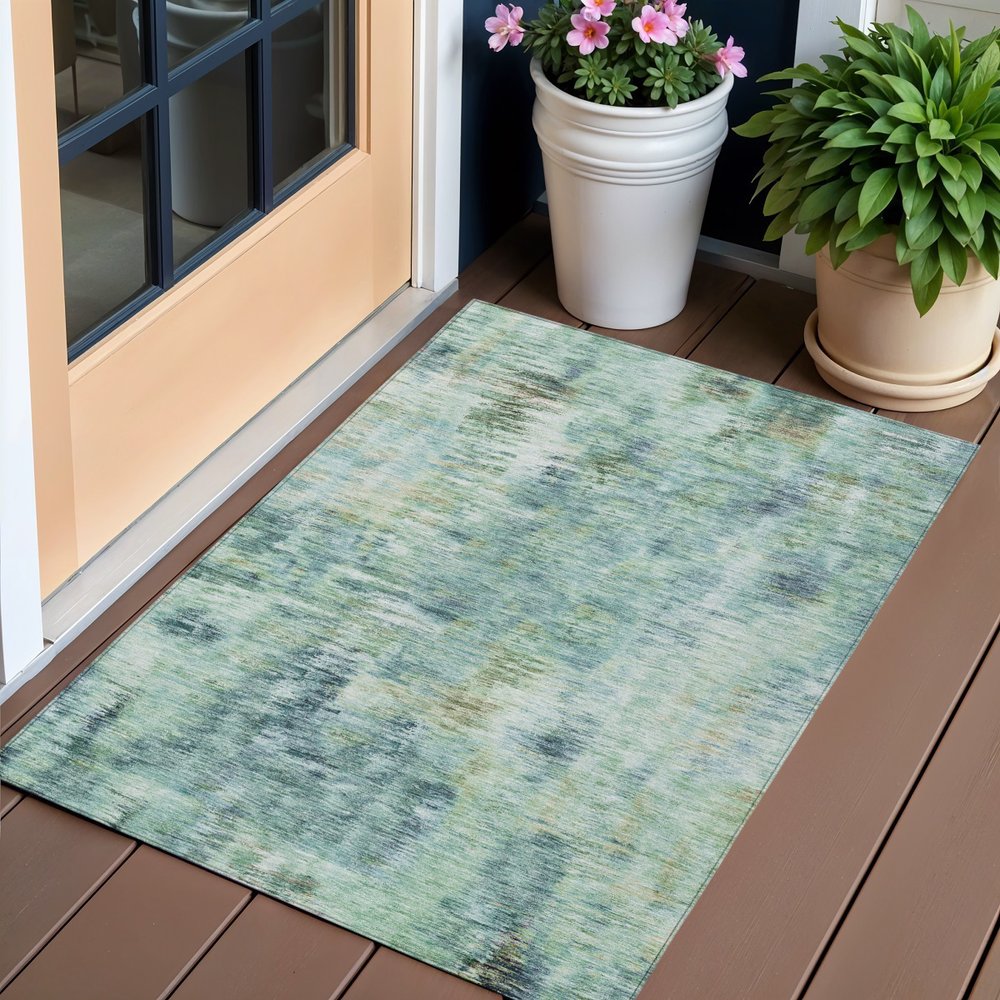 More from 3' X 5' Teal Blue Green And Ivory Abstract Washable Indoor Outdoor Area Rug Collection