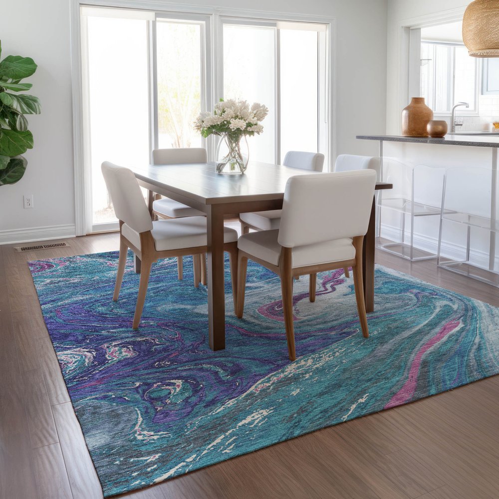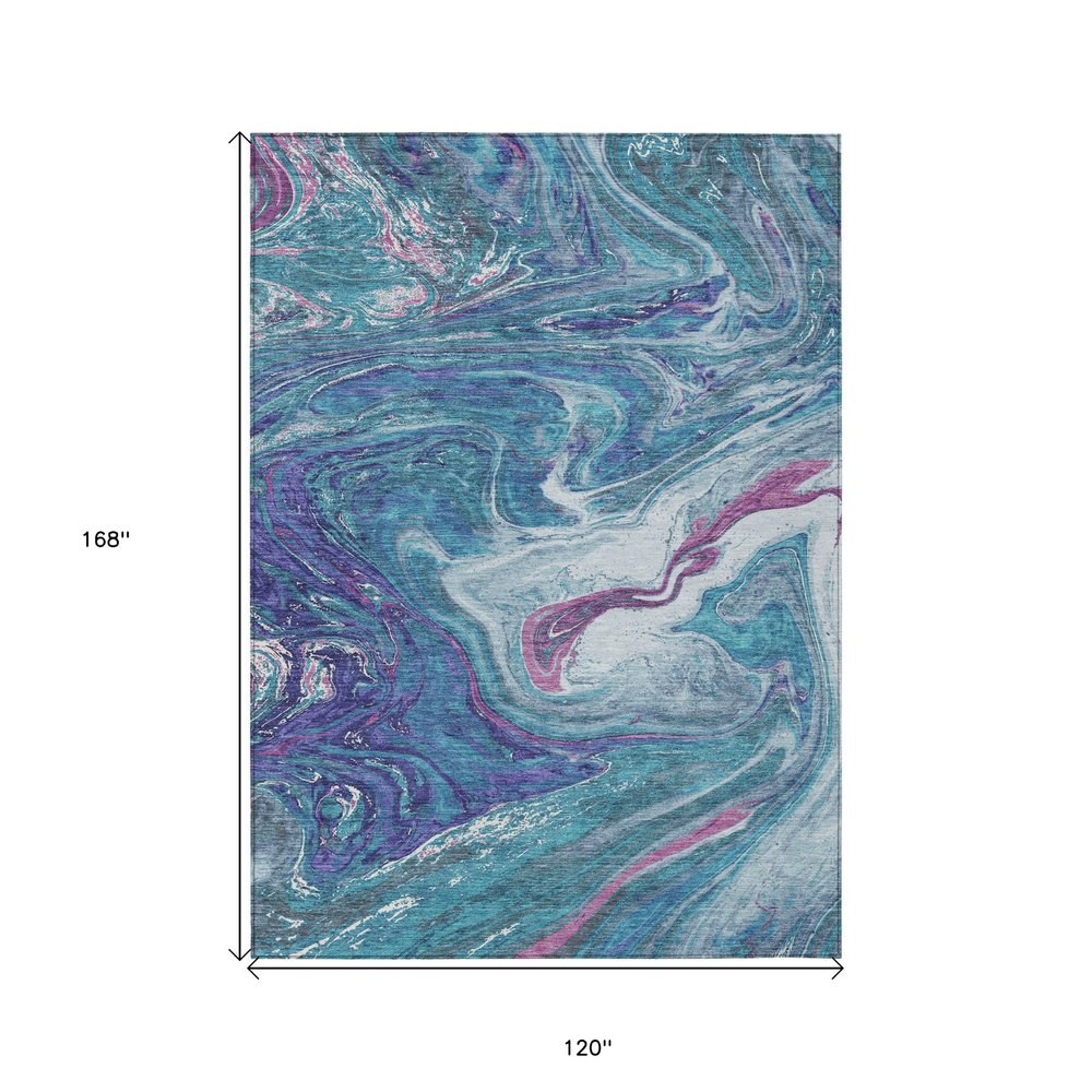 More from 3' X 5' Teal Blue Purple And Pink Abstract Washable Indoor Outdoor Area Rug Collection