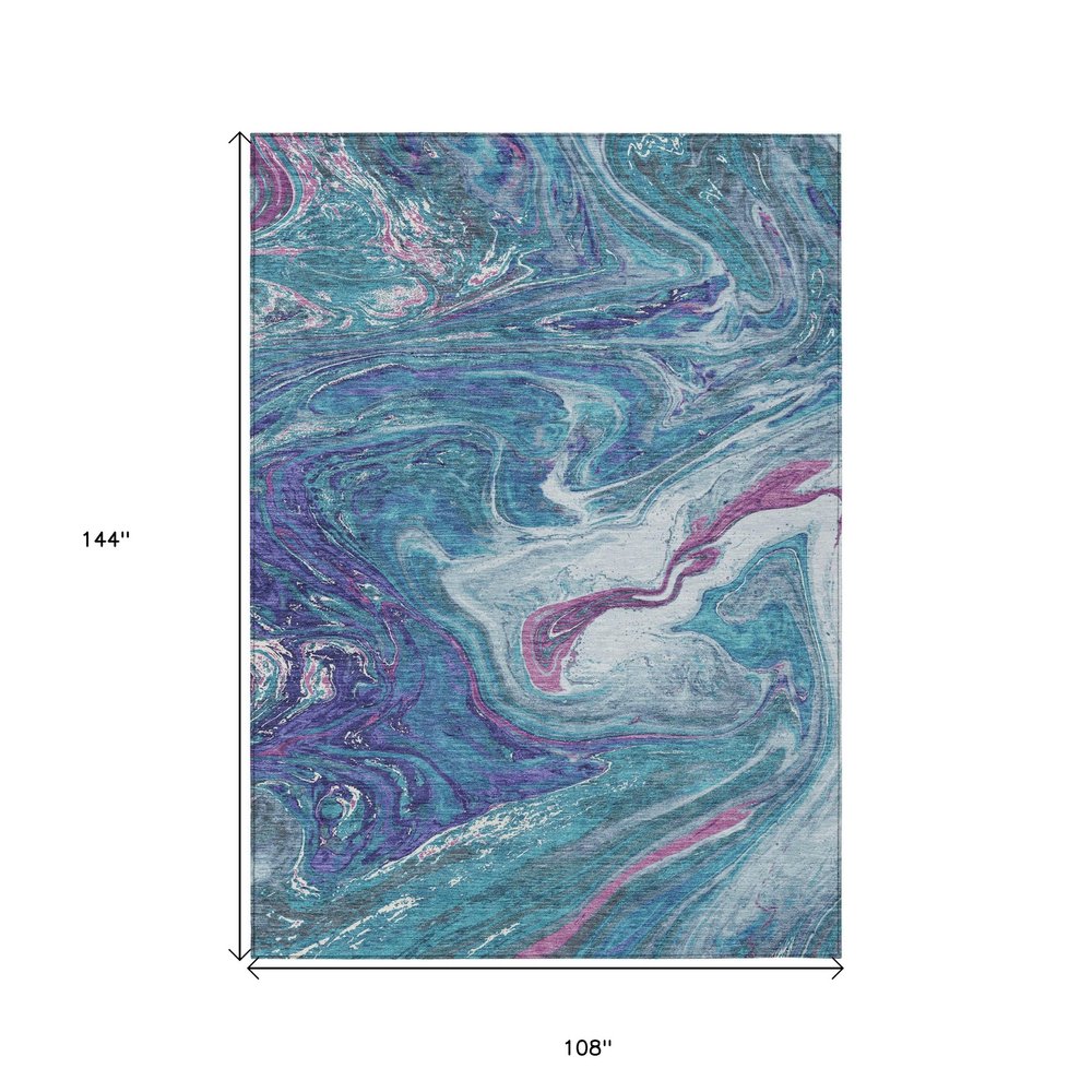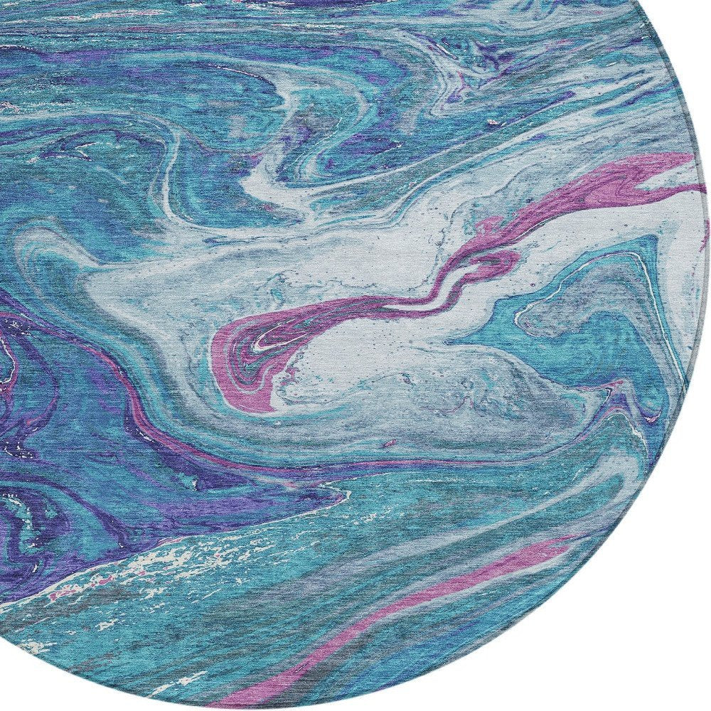 3' X 5' Teal Blue Purple And Pink Abstract Washable Indoor Outdoor Area Rug