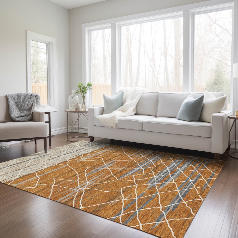 Set an inviting tone in your space with this 3-foot x 5-foot terra cotta beige and ivory striped washable indoor outdoor area rug. This rectangle shaped rug features a striped design that will work well both indoors or out. A classic shape marries with good looking design for your living room, hall, bedroom, porch, patio, or poolside. Ideal for outdoor spaces or high traffic areas with kids and pets, this rug is made from heavy duty polyester that is stain resistant to help repel water, dirt, and stains. Versatile in use, durable, and easy to maintain, this rug is an ideal solution to add a decorative and inviting touch to your indoor or outdoor space. 36-inch h x 60-inch w x 0.19-inch d.