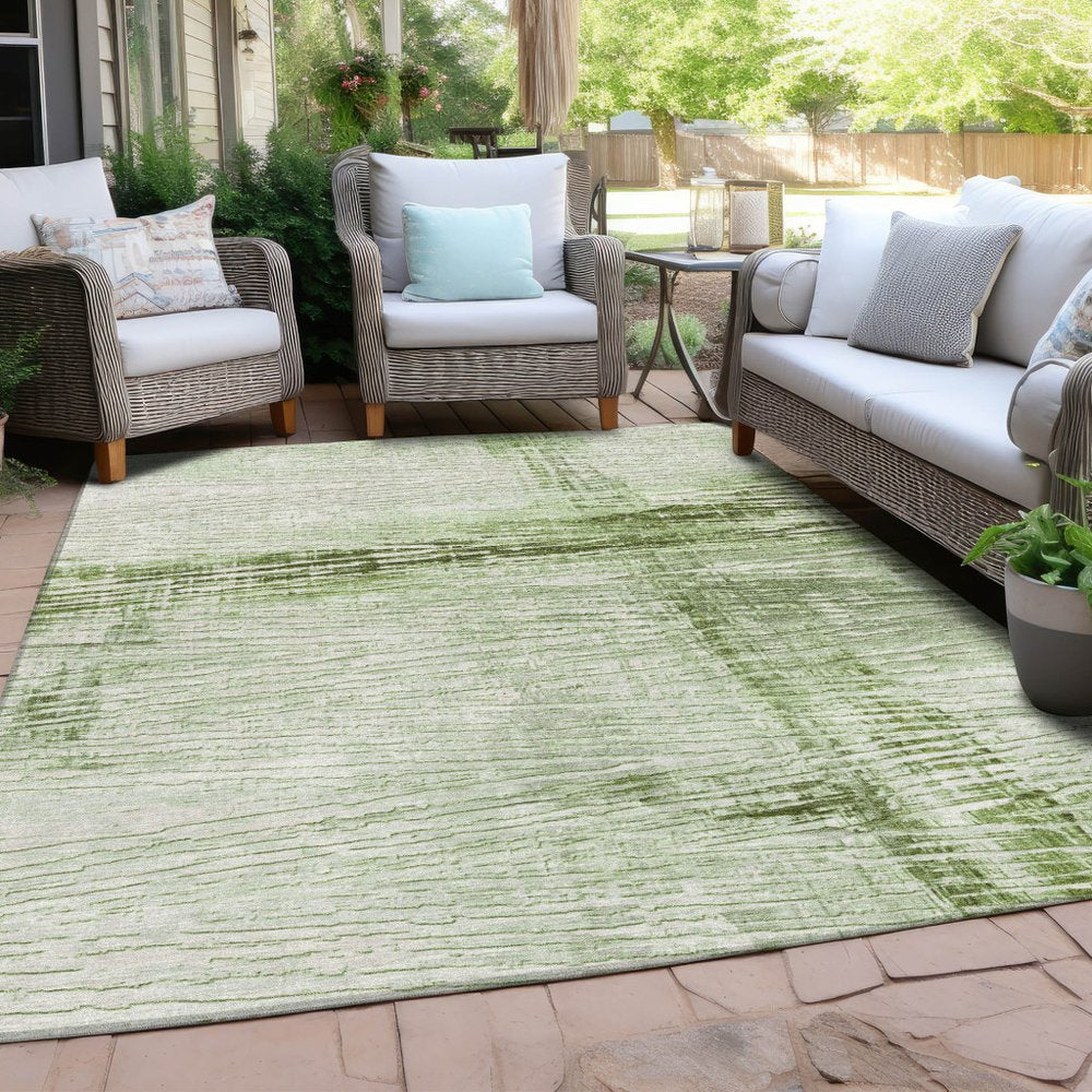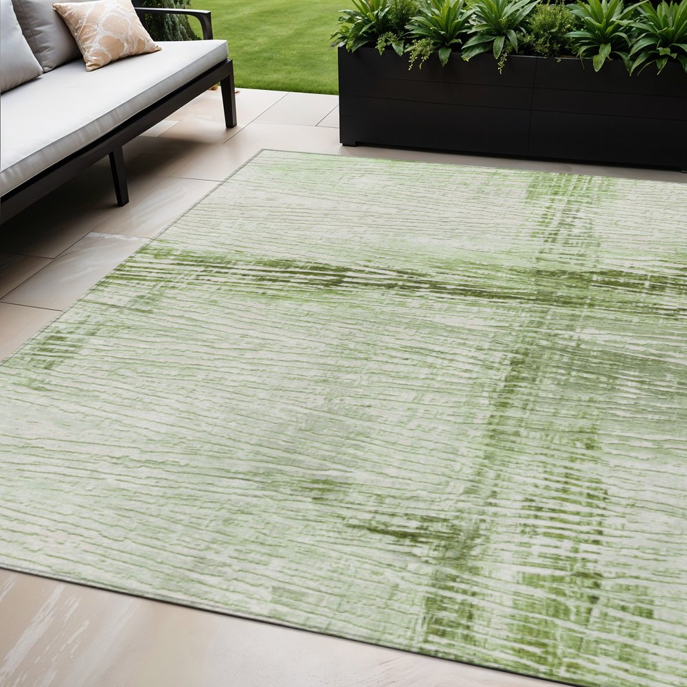 More from 5' X 8' Artichoke Green And Ivory Striped Washable Indoor Outdoor Area Rug Collection