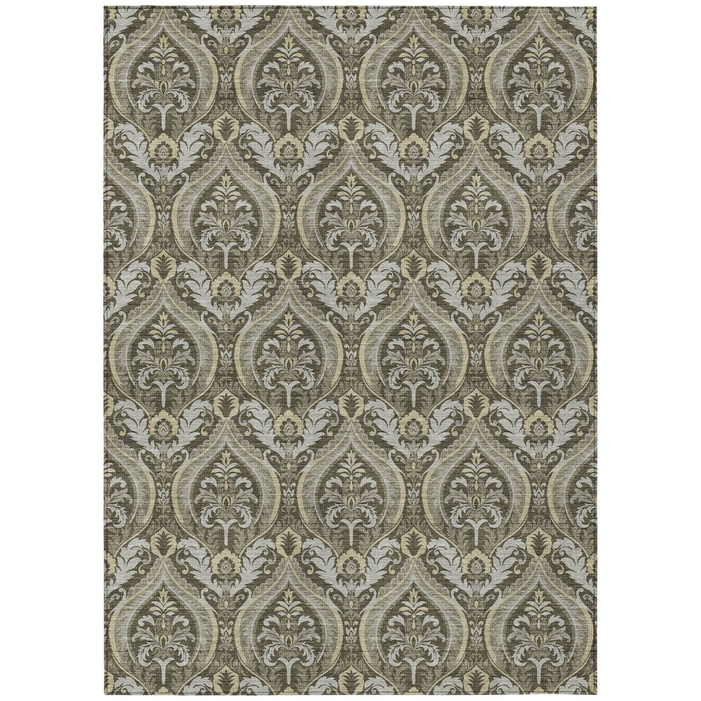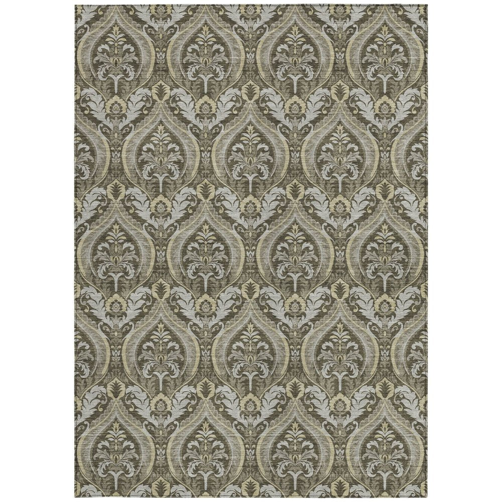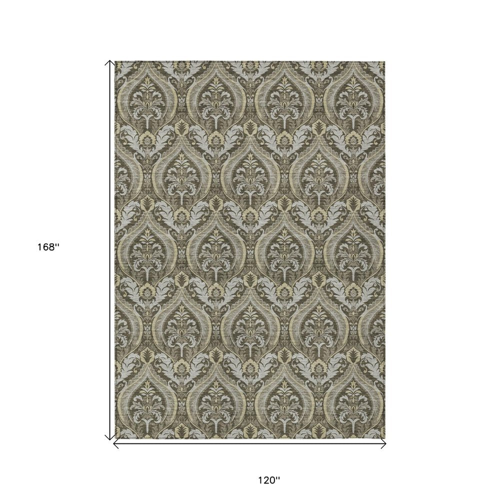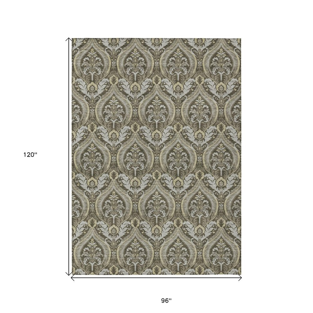 This 8-foot x 10-foot taupe and beige damask washable stain resistant non skid indoor outdoor area rug, is a great way to add warmth to a room. This rectangle shaped rug features a damask design in taupe and beige to give it visual interest. A classic shape marries with good looking design for your space ideal for spaces with kids and pets, this rug is stain resistant to help repel stains and spilled liquids. Place this area rug against a hardwood or tile floor and it will enliven your living space with style and sophistication. 96-inch H x 120-inch W x 0.19-inch D