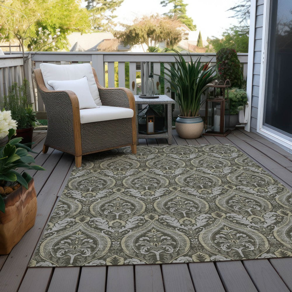 More from 8' X 10' Taupe and Beige Damask Washable Non Skid Indoor Outdoor Area Rug Collection