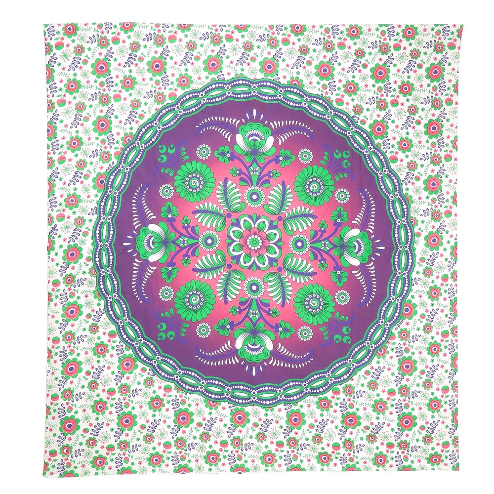 Add an air of fashion to your room and rejuvenate the space with this 88-inch x 84-inch green purple and white floral cotton hanging tapestry. Easily create a focal point in your room with this generously sized bohemian decor. Handmade with care, this piece brings some authenticity to your space. Instantly liven up your space with this art that brings color and dimension to your walls. Adorn your walls in style with this bed icon art. This good looking decor will fill the empty space on your wall while adding a stylish and decorative touch. Utilize this opportunity to create a focal point in the room with this fabulous wall decor option. 88-inch h x 84-inch w x 0.2-inch d.