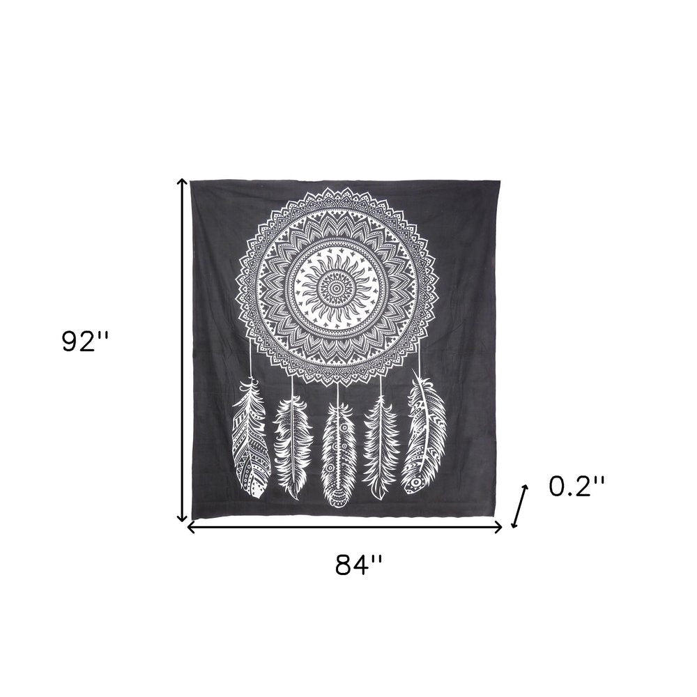 92" X 84" Black And White Abstract Cotton Hanging Tapestry