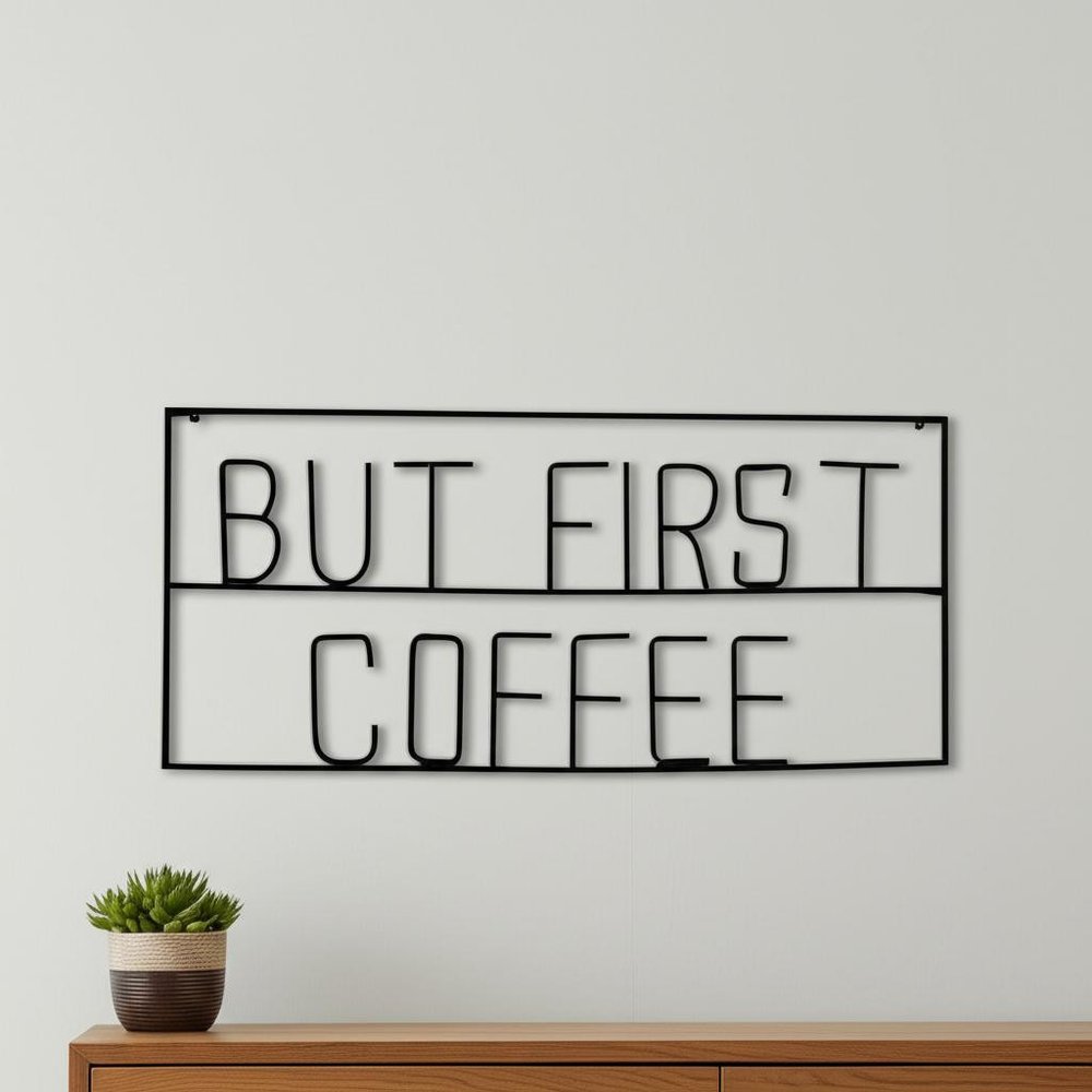 But First Coffee Sign 26" X 13" Black But First Coffee Metal Wall Decor
