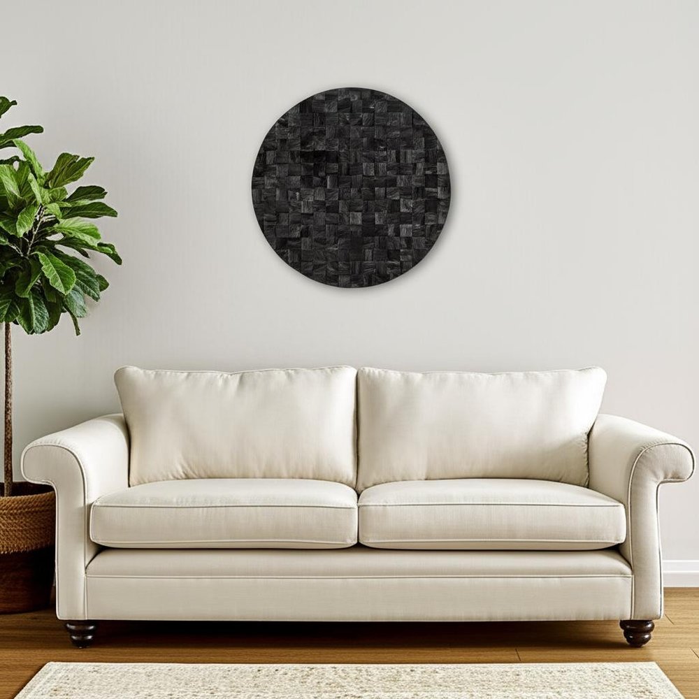 Into the Abyss II 32" X 32" Black Geometric Wood Circle Hanging Dimensional Sculpture